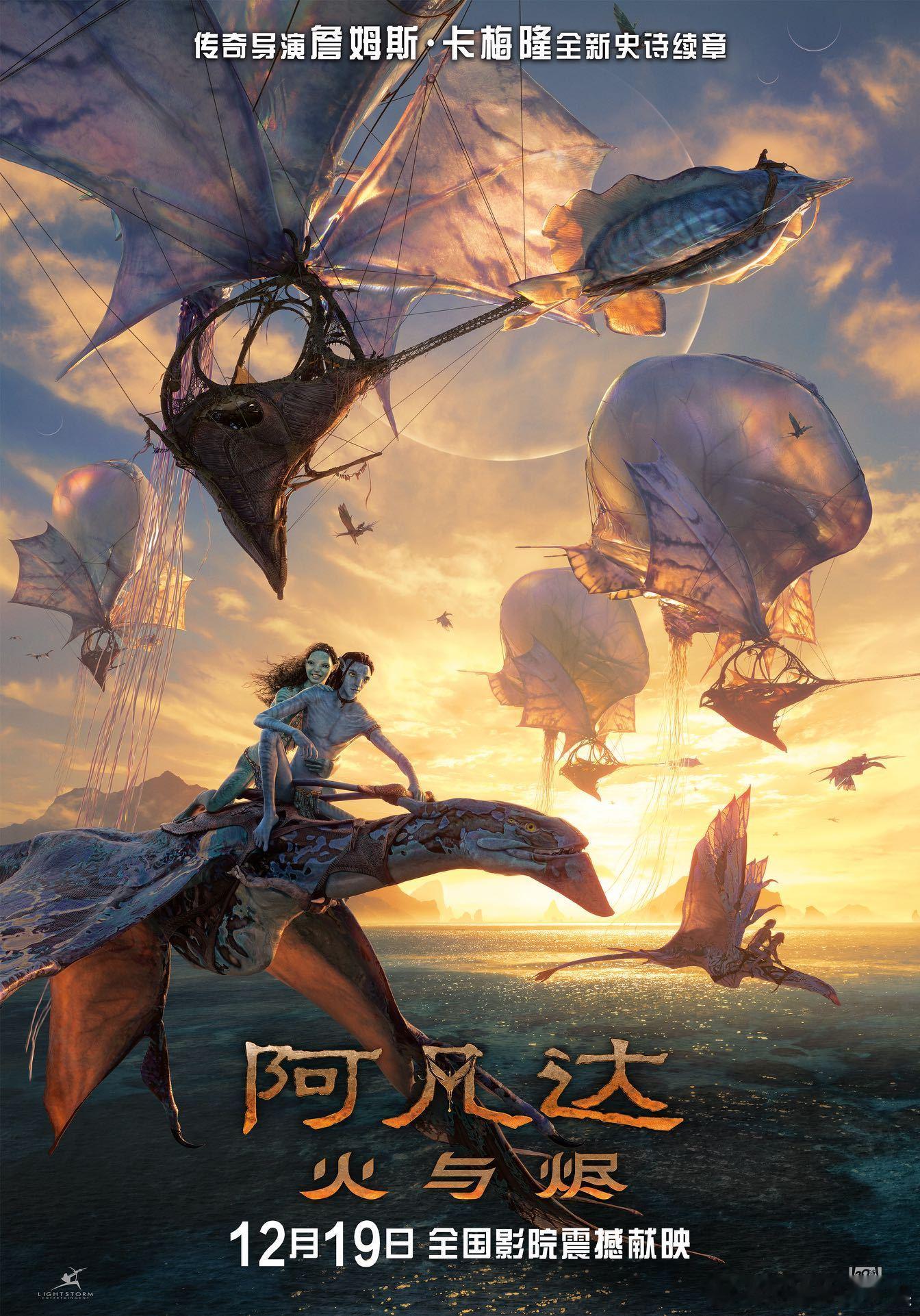 阿凡达3(2025) 我的评分:从2009年第一次被潘多拉的奇幻世界震撼到,《阿凡达3》终于在12月19日全球上映了。迫不及待看了点映,全程三个小时,光是特效和时长就值回票价!还是那个永远可以相信的卡梅隆执导,原班人马全员回归。阿凡达3今日上映 詹姆斯·卡梅隆 作为最会拍商业片的导演,全片视效交给顶尖的维塔数码打造。哈利路亚山的悬浮奇景和岛礁族的水下秘境,还有全新的壮观地貌,每一帧都适配大银幕,甚至感觉自己真的钻进了潘多拉星球。这次剧情聚焦杰克和奈蒂莉的家族故事,前作长子牺牲后,一家人的关系彻底被打乱。奈蒂莉陷在复仇里走不出来,杰克拼尽全力想稳住族群和家庭,共同度过这段创伤期并相互治愈太好哭了,这部电影令人惊喜的地方,在于它能真正触动心弦。更惊喜的是潘多拉的版图直接翻倍,新登场的“风行商队”驾着浮空艇带你逛云端,还有性情凶猛的全新族群,首领瓦朗自带危险魅力,直接颠覆了之前对纳威人的认知,整个生存格局都被改写了。《阿凡达3》里纳威族和人类的最终对决海陆空三线同时开打,万箭齐发对上机甲炮火,纳威人驾驭着各种异兽在战场穿梭,水火交织的场面看得人肾上腺素狂飙。而且潘多拉的神奇生物也上新了,图鲲、吐鲁克这些老熟人强势返场,还有巨型空中生物梅杜索斯、强悍的夜影加盟。最戳人的是卡梅隆藏在剧情外壳下的温情,他把自己当爸爸的真实感受写进剧本,让这场星际冒险多了直击人心的温暖力量。不管是父母的守护,孩子的成长,还是族群间的共生,都能让人共情,这才是具开创意义的巨制该有的样子,不愧是卡神!12月19日,赶紧约上朋友冲特效厅,去潘多拉赴这场16年之约,绝对是值得的大银幕体验!跨年电影愿