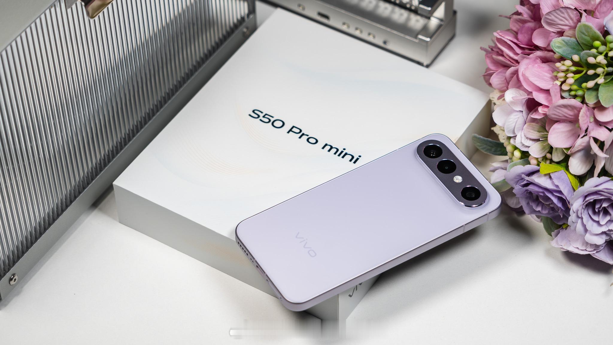 It's vivo S50 Pro mini 【灵感紫】。在蓝厂的整个 S 系列里,Pro 一直是销售占比相对较少的型号。早期的 S Pro 甚至连外观、核心配置甚至连 S 系列最重要的影像特性都和 S 标准版一模一样,有的仅仅是处理器规格更高而已,这样的配置区隔在不小的价位提升之下是很难吸引用户的“额外关注”而选购的。所以从 S17 Pro 开始蓝厂开始慢慢的提升 S Pro 的产品档位和细节规格:S17 Pro 开始配备独立的 2X 人像镜头,S18 Pro 开始在独立 2X 人像镜头的基础上将核心规格提升至 n-1 代旗舰处理器的配备,S20 Pro 则破天荒的直接配上了几乎和 X 标准版同档的影像规格(尤其是支持长焦微距的 IMX882 3X),让 S Pro 几乎快成为换外观版本的上一代 X 系列标准版的产品。S30 Pro mini 则是更大胆的“变阵”:将 X 系列的 Pro mini 定义下放至 S 系列,不仅有着 n-1 的旗舰平台,也有和 X 系列接近的影像规格,还有着 6.31 英寸的小机身。而在这样的变化之下,S30 Pro mini 成为历代 S 系列产品中 Pro 档位产品比例最高的产品,算是一次成功的“市场验证”。其实 S30 Pro mini 的海外型号更能说明 vivo 对这个机型的“准确定位”:X200 FE,没错,在海外市场,S30 Pro mini 不是放在 S 系列的海外版 V 系列里发布的,而是直接放在 X 系列里发售的。在 X 正代标准版产品持续向上升档的同时,下面腾出来的 3K-4K 档空间,的确是需要一部更符合这个档位定位和用户需求的产品,S30 Pro mini 比过去几代的 S Pro 都更加符合这个档位产品的定位。而这样的产品定义,在正面的市场反馈之下,也就顺理成章的延续到了 S50 Pro mini 上。上一代的 S30 Pro mini,还是能看出很多属于 S 系列这类中端机的规格点的,除了 n-1 代的旗舰处理器,还包括指纹依旧是光学指纹、没有无线充电等。而今年的额 S50 Pro mini,已经很有点旗舰入门档的感觉了:没有用 n-1 代的旗舰平台,用上了虽然性能类似但是架构和制程都是正代旗舰同款的新骁龙 8 Gen5,存储规格毫不吝惜的配上了 LPDDR5X Ultra+UFS 4.1,X 系列旗舰同款的超声波指纹和 40W 无线充电也都给了。这机器在海外将毫无意外的以 X300 FE 上市——事实上,它相较于去年的 S30 Pro mini,的确是更靠近真正的 X 系列。要是在国内市场给它改个名字叫 X300 FE / 活力版之类的发售,我也不会觉得很意外……相较于过去 S 系列标准版和 Pro 在外观设计(尤其是 Deco)上的一致,S50 Pro mini 首次出现了标准版设计和 Pro 版设计不一致的情况。在上一代 S30 系列就“果味浓郁”的基础上,S50 Pro mini 的后盖设计更是向 iPhone Air 的 Deco 设计靠拢——不过这个设计对于小尺寸机身的用户握持来说是相当有益处的,Deco 高度上移并左右位置平均之后不仅解决了原来 Deco 边缘靠下食指易触碰到 Deco 凸起的“硌手”问题,放桌上也没有了“跷跷板”的问题。S50 Pro mini 的影像规格也没有因为 Deco 的小型化而缩水,反而在长焦规格与 S50 一致的情况下(同档产品中规格最高的 IMX882 3X 超薄舰式潜望),主摄由以往在 S Pro 中常用的、比 X 系列光圈小一号的 f/1.88 的 IMX921 主摄模组直接变成了 X200 / 200s / X Fold 5 同款的 f/1.57 大光圈的 IMX921,进一步提升了整体的拍照体验(尤其是主摄夜景 / 主摄 2X 人像和近距离拍摄的体验)。唯一“不够看”的,还是那颗 800 万像素超广角,不过加上蓝厂一贯的超丰富影像功能,它可以继续坐稳同档产品里的综合影像 TOP 的位置。而且因为 Deco 的体积大幅缩小,S50 Pro mini 在保有了 40W 无线充电的基础上能把电池容量提升到和 S50 一样的 6500mAh 规格,在拥有潜望长焦的 6.3 英寸机身的机器里,它是目前电池容量最大的一部。因为这一代 S50 全系都是高通 8 系平台,S50 Pro mini 其它的不少规格和 S50 保持了一致(包括相较于前代明显提升的 15 个 5G 频段总计 43 个频段);但也因为 S50 Pro mini 用上了骁龙 8 Gne5 这样的新核心新架构新平台,不少特性支持追上了旗舰产品。在 X 系列的定位“水涨船高”的同时,S50 Pro mini 接下“小 X”的次旗舰定位已经是顺理成章的事情,而现在的它,的确就是一部不折不扣的“小 X”了。vivo S50 Pro mini