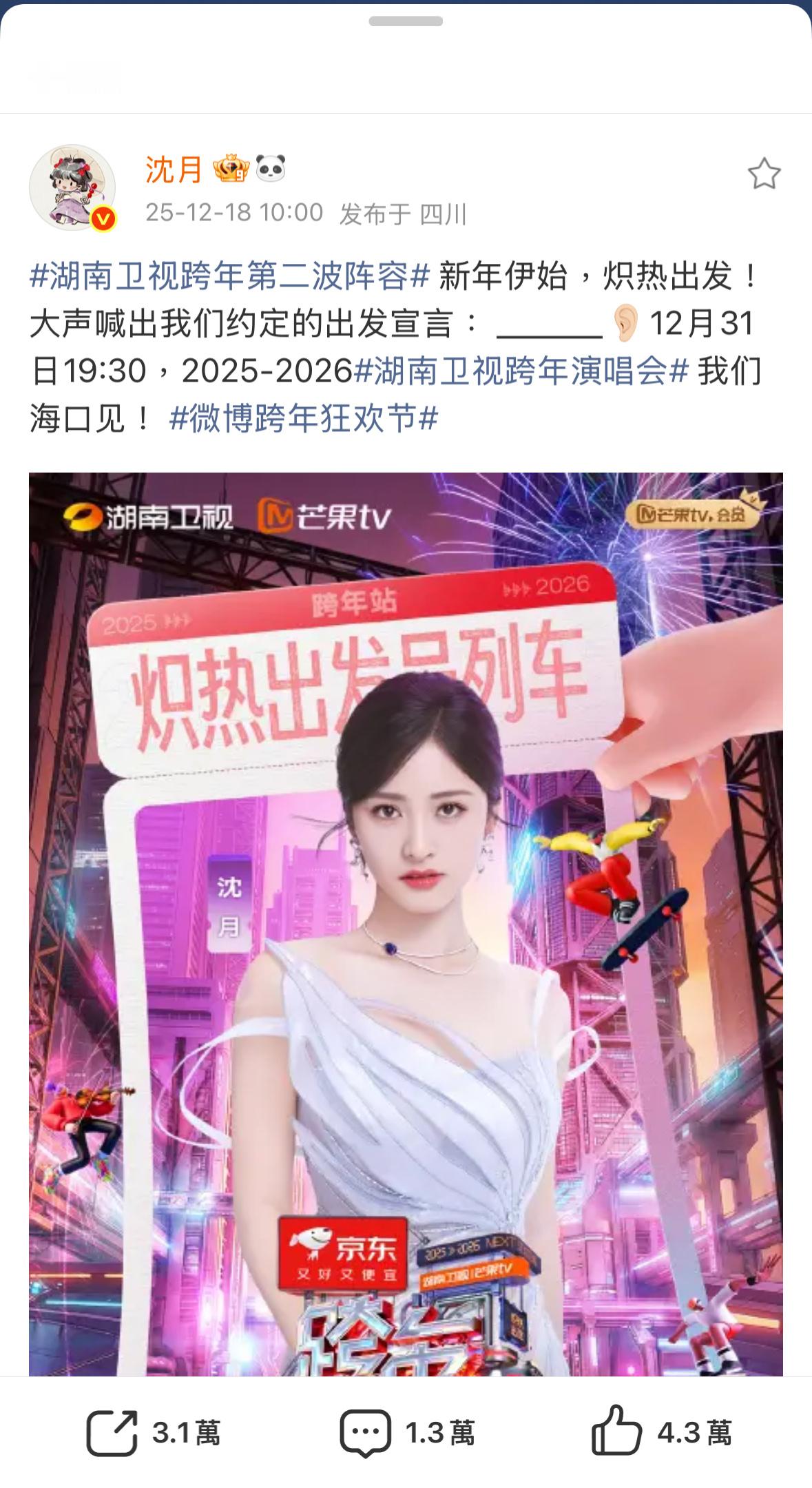 就这个王心凌太宠了每年都可以和自担一起跨年真的很开心幸运呢期待今年我凌的精彩演出