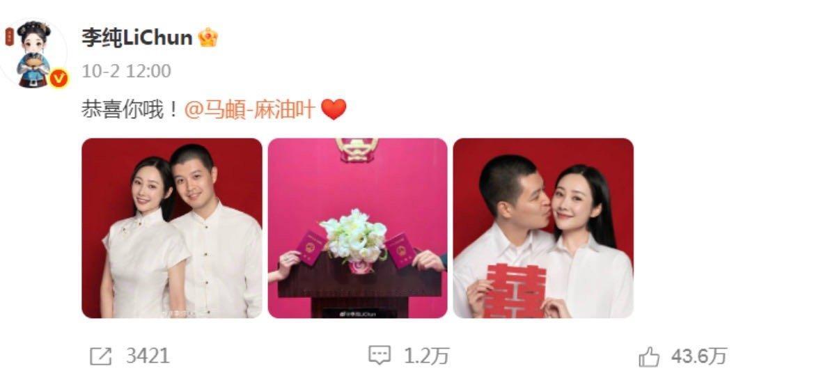 李纯回应女主运欠佳李纯说结婚不需要理由 有人认为的女主运好像差了一点,对此她表示能接到自己喜欢的角色并且剧集可以顺利播出已是一种幸运,要什么自行车啊还!