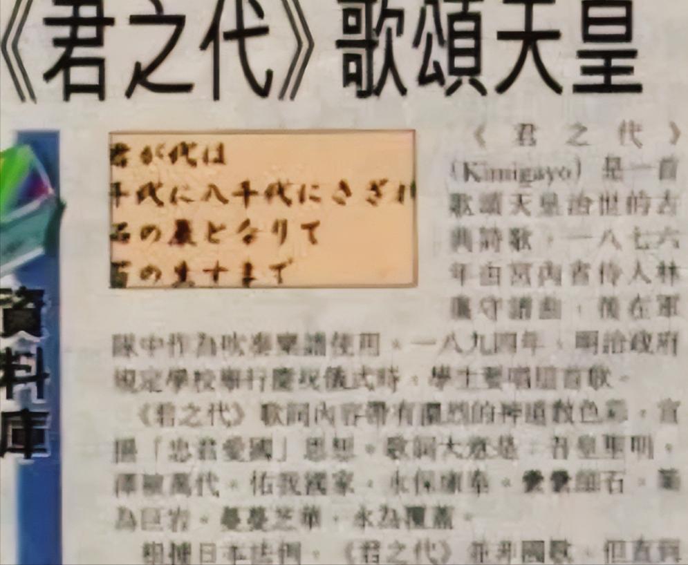 韩国节目播日本国歌,引发抗议?背后原因其实很多人都不知道。 日本国歌只有28个字,将它翻译成汉语后,才知道日本人说的是什么。 2014年,韩国JTBC电视台在播放一位日本艺人的表演时,背景音乐里放了完整的日本国歌。 导演原本只是为了配合舞台气氛,没多想。 可没想到节目一播出,立刻在韩国观众中引起强烈不满。 不少人直接上街抗议,认为这段音乐触碰了民族情绪。 最后电视台只能公开道歉,并承诺以后不再随意播放日本国歌。 很多人会问日本国歌到底唱了什么?为什么韩国反应这么大? 日本国歌叫《君之代》,大约在 1880 年正式确定曲调,并在明治天皇生日那天首次演奏。 旋律比较古风,节奏也很慢,听起来带着明显的宫廷仪式感。 后来一直沿用到今天。 部分亚洲国家对这首歌很敏感原因主要来自历史背景。 二战时期,日本把这首歌作为出征仪式和军事庆典的重要曲目。 士兵出发前要唱,战争中取胜也要唱。 在那段年代里,这首歌被频繁用于军事活动。 因此对曾经遭受战争影响的国家来说,这段旋律会自然联想到那段历史,情绪上难以接受。 韩国的强烈反应,并不是对歌曲本身有什么意见,而是对历史记忆的敏感。 歌词本身是怎样的? 《君之代》的歌词很短,中文翻译只有二十多字。 主要内容是祝愿“君”(天皇)的时代长久延续。 放在当时的日本社会,属于传统的君主颂歌。 但后来因为战争时期的使用方式,使得这首歌的象征意义变得特别复杂。 这首歌本身并不复杂,真正引发争议的,是它在不同时代被赋予的含义。 韩国观众的激烈反应,也不是针对音乐本身,是出于历史情绪。
