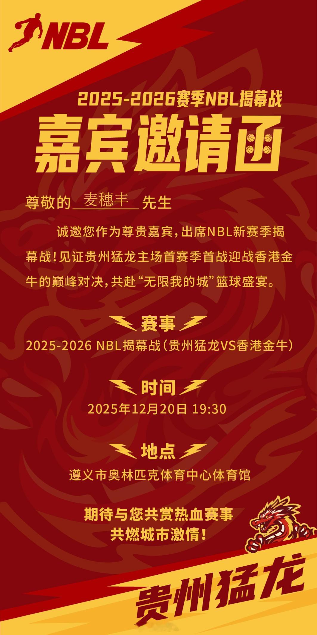 明晚一起来看新赛季NBL揭幕战啊!NBL联赛贵州猛龙vs香港金牛 遵义·遵义