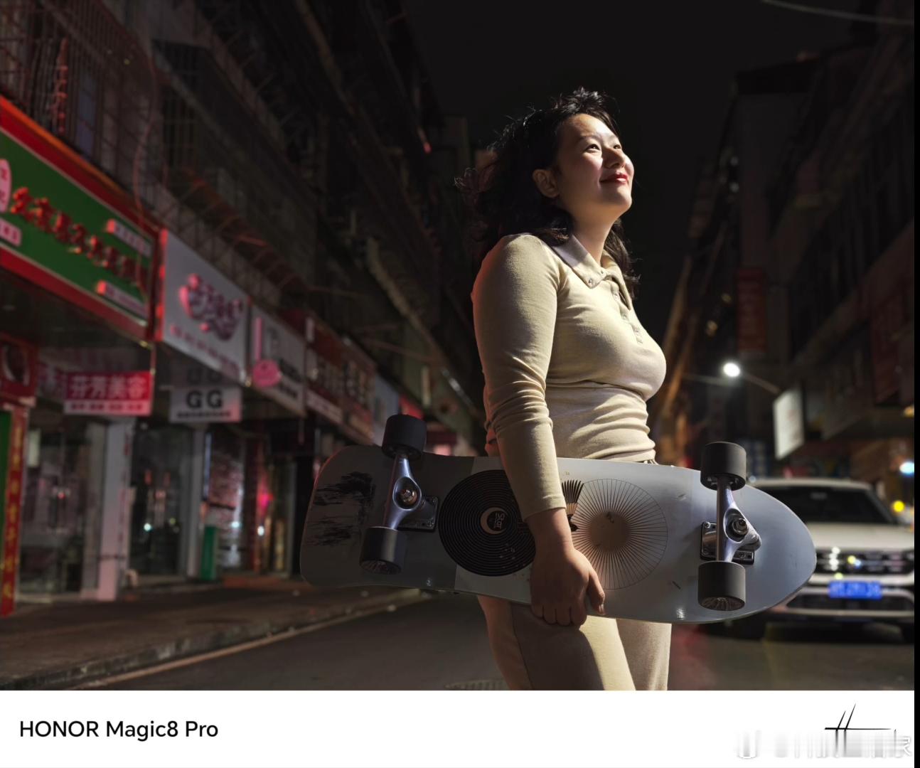 夜色里的第二人生在自己的时区发光,意味着不再活在别人的眼中。这种人生态度的转变,需要一种不加滤镜的真实记录。荣耀Magic8系列在捕捉这些面孔时,AI人像引擎展现了它对“真实美感”的深刻理解。视频中客人们干杯的热闹瞬间,即便处于酒馆杂乱的光源下,凭借1/1.4英寸超大底传感器,画面依然保持了极高的通透度,实现了高光不过曝、暗部有细节。而荣耀Magic8系列所搭载的2亿超夜神长焦,在多倍变焦下依然拥有碾压级的解析力,这种物理光学上的硬实力,是对酒馆老板告别大厂复杂人际、拥抱真诚友谊的最佳注解。更有AI自由指令生图等趣味功能,让专业摄影不再有门槛。虽然有人反馈这种记录“过于真实”,但在我们看来,只有这种能够看清发丝细节、经得起放大的影像,才能承载起人生的厚度。这种真实,本身就是一种力量。夜色里的中国