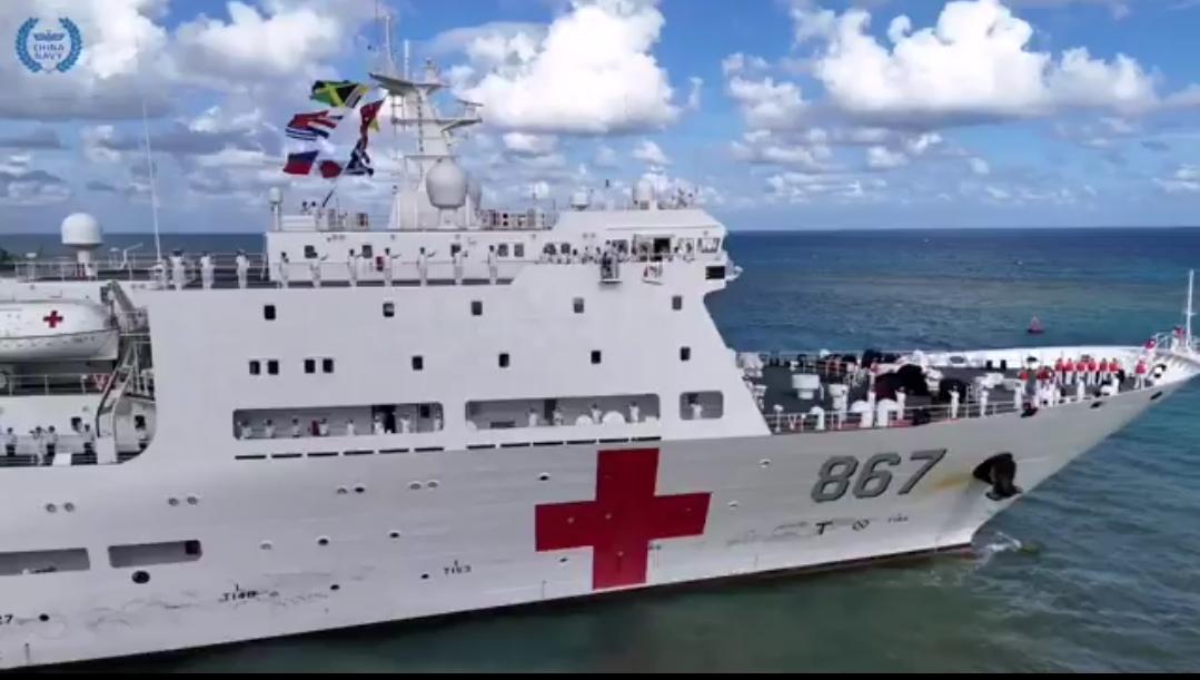 新闻快讯——(当地时间12月16日)中国海军“和平方舟”号医院船圆满结束对牙买加的友好访问及医疗服务任务,驶离法尔茅斯港,前往下一站巴巴多斯执行任务。 访问期间,“和平方舟”号在蒙特哥贝、金斯敦、法尔茅斯三地累计为7536人次提供诊疗服务,完成手术及各类医疗操作715台,收治住院患者50人,创下该船海外任务以来主医疗平台单站诊疗人次的最高纪录。 同时,中国海军还派出医疗专家骨干,与牙买加医护人员开展联合会诊及学术交流,得到牙买加政府和当地民众的高度赞誉。