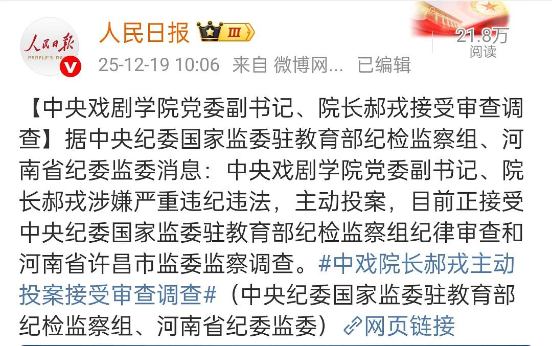 电视剧《无悔追踪》肖大力的儿子“肖新桅”最近出事了,演员郝戎曾是“中戏”的老师,一手带出章子怡、刘烨、孙红雷等电影明星,在已有王志文镇宅的情形下,郝戎出任台词教员多年,当年被视为前途无量!这许多年下来,郝戎也是不负众望,一路高升,现已官至中央戏剧学院党委副书记、院长。 前日忽传其涉嫌严重违纪违法,主动投案,目前正接受中央纪委国家监委驻教育部纪检监察组纪律审查与河南省许昌市监委监察调查。 其实,“中戏”被上边盯住也不是一天两天了,前年春天招考季便有工作组进驻,因为艺术院校“艺考”这一环节是最容易有猫腻儿的。艺术类毕竟与理工科不同,它是没有标准的统一答案的,这里边儿考官给你判多少分儿、弹性到底有多大,可想而知! 例如,早先有传闻说某音乐学院艺考生二胡拉的特别棒!考试的时候把鸟都给招来了,但是因为没有关系,事先没有进贡,所以一试就给刷下来了! 艺术院校的艺考遭人质疑、被上头监督,这是再正常不过的事情。但是真有工作组进驻,“中戏”还是开天辟地头一遭!据说那年严格到考生临进考场前才能得知自己的考号,以防止事先串通作弊! 影视界行里人都背地里暗戳戳地议论,自打工作组进驻“中戏”,“中戏”学生的颜值和专业水平都有了大幅度的提高! 当然,现在事情还没有调查结果,所有的想法都只是揣测而已。大家就是搞不明白,到底涉案金额有多大?要搞到一院之长去投案自首?! 简直是无语问苍天,人世间到底哪里还有净土?