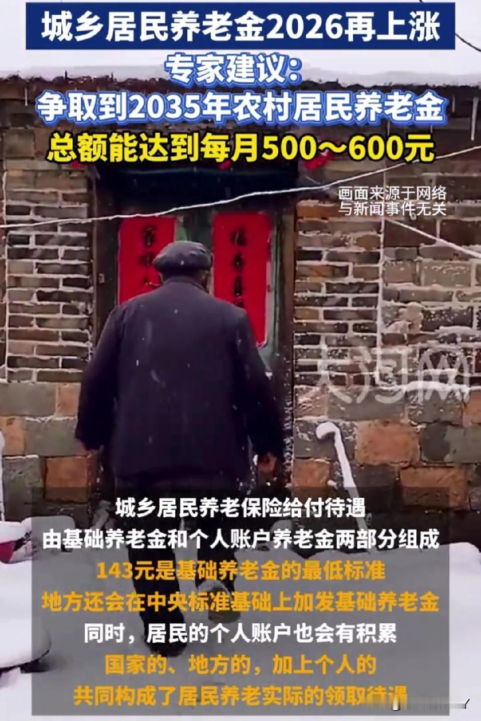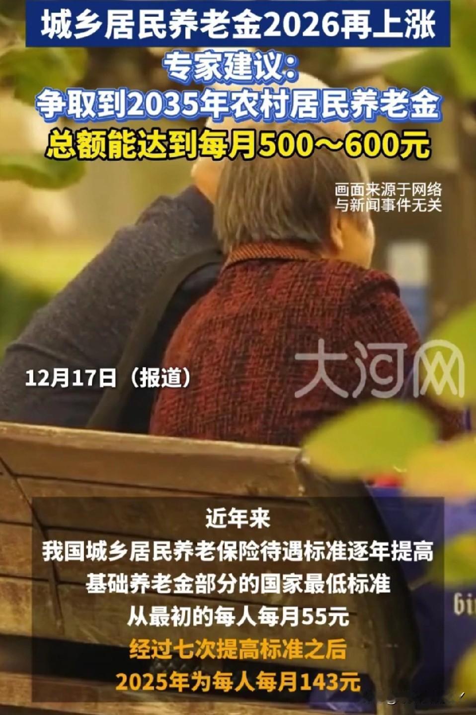 好消息!2026年城乡居民养老金即将再度上调,更有专家提议,到2035年农村养老金目标要达到500 - 600元。 咱们无锡当下城乡居民基础养老金为每月665元,被征地老人能领到1165元,这一水平在江苏稳稳位居前列! 期待新政策早日落地,让养老金再上一个台阶,让每一位参保长辈的晚年都多一份踏实与安稳~