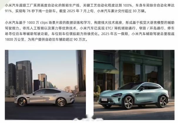 消息称,小米汽车也在北京市获得L3级自动驾驶道路测试拍照,并且已经开始常态化L3级道路测试。消息源于《北京市自动驾驶汽车年度评估报告(2024-2025)》。小米依靠人工智能和算力等优势技术,在智能驾驶方面的能力应该也挺不错的,现在阶段是常规道路测试和数据收集。难道是明年SU7换代升级爆料其中之一吗?小米汽车L3