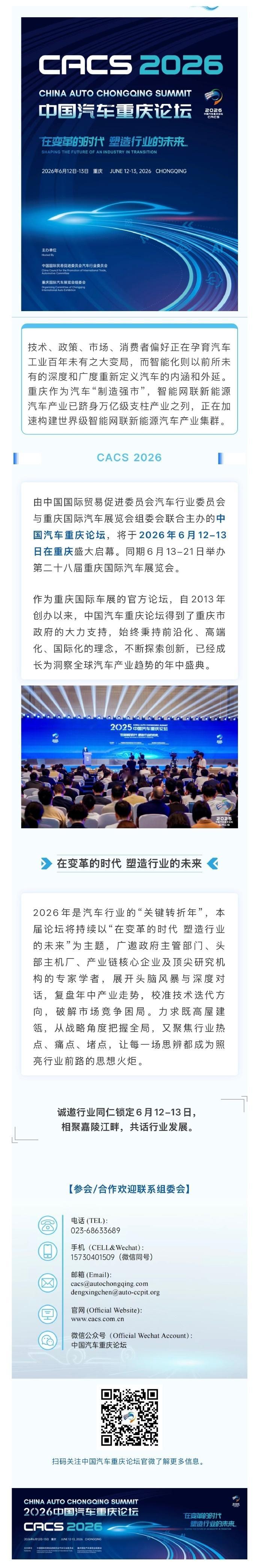 【官宣定档】2026中国汽车重庆论坛,6月12-13日与您相约重庆2026中国汽