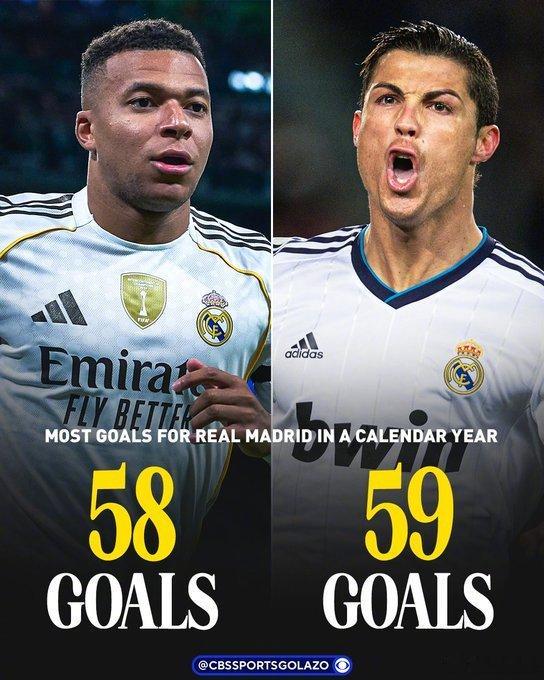 【冲击纪录】2025年的姆巴佩,已经为皇马打进58球,距离C罗创造的队史自然年进球纪录仅有1球之差!12月20日,皇马将主场迎战塞维利亚,这是姆巴佩追平甚至超越纪录的最后一场比赛。西甲