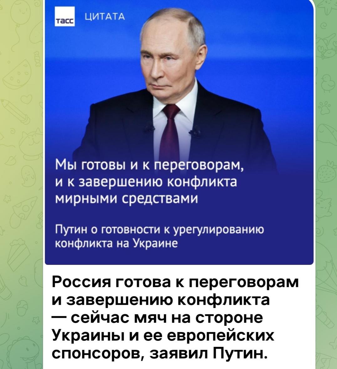 [彩虹]普京联系-普京表示,俄罗斯准备进行谈判并结束冲突——现在球在乌克兰及其欧洲支持者一方。