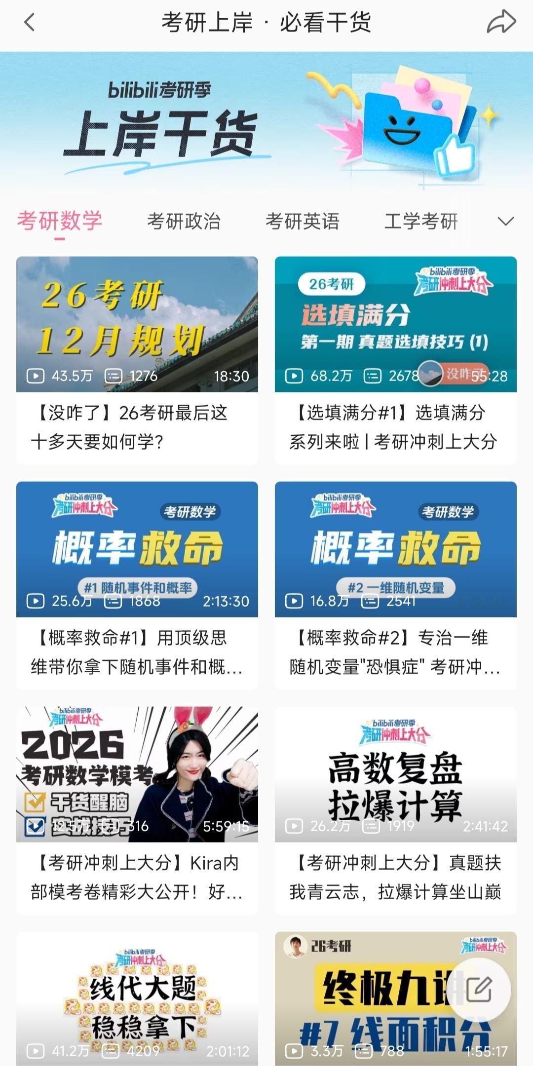 明天,2026年全国硕士研究生招生考试初试正式开考!对于今晚还在积极备考的考生朋友,小破站搜“考研”免费资源助力考前冲刺,名师助力击破多学科重难点!当然好心态也非常重要,今年考研人数连续第三年下降至343万,大家要有信心,好好准备必定上岸!祝福看到本条博文的学子,都能得偿所愿!考研为考研加油