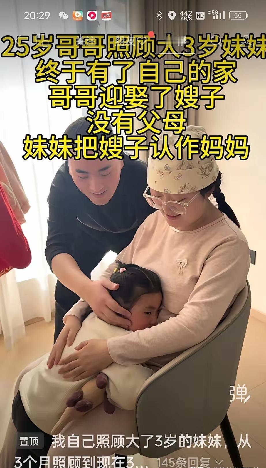 爱从来不是血缘的专属,而是真心换真心的双向奔赴!25岁哥哥扛下一切,把3个月大的妹妹宠到3岁,这份长兄如父的担当早已暖透人心。 没想到嫂子的出现,让缺爱的小丫头彻底有了归属感,一声“妈妈”喊出的全是信任。原来幸福从不是完美家庭的标配,而是有人愿意为你填补空缺。 你见过这么暖心的家庭羁绊吗?来评论区说说你被戳到的瞬间~
