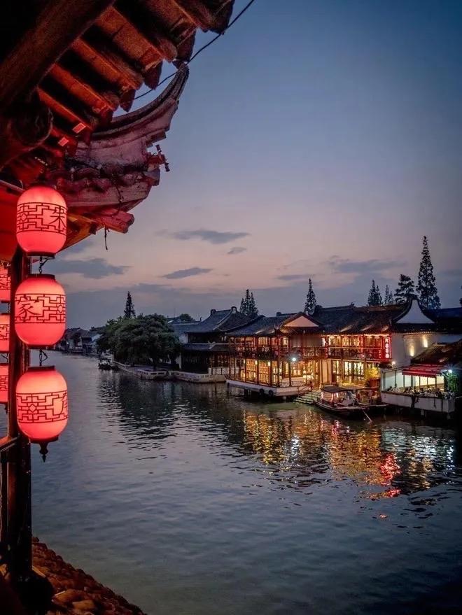 暮色漫染水巷,青石板上浮起薄雾。河心倒影摇曳,红灯笼在檐角垂落,像一串熟透的柿子坠入墨色绸缎。乌篷船系着铜铃,风过时叮咚作响,惊起岸边橹声欸乃。白墙黛瓦间,窗棂漏出暖黄光晕,映得瓦当上的苔痕泛着翡翠光。抬头望,星子在云隙间忽明忽暗,桥洞下流水潺潺,似有千年月光在石缝间流淌。此间风物,不必多言,已是半卷诗,半幅画,半壶温热的黄酒香。