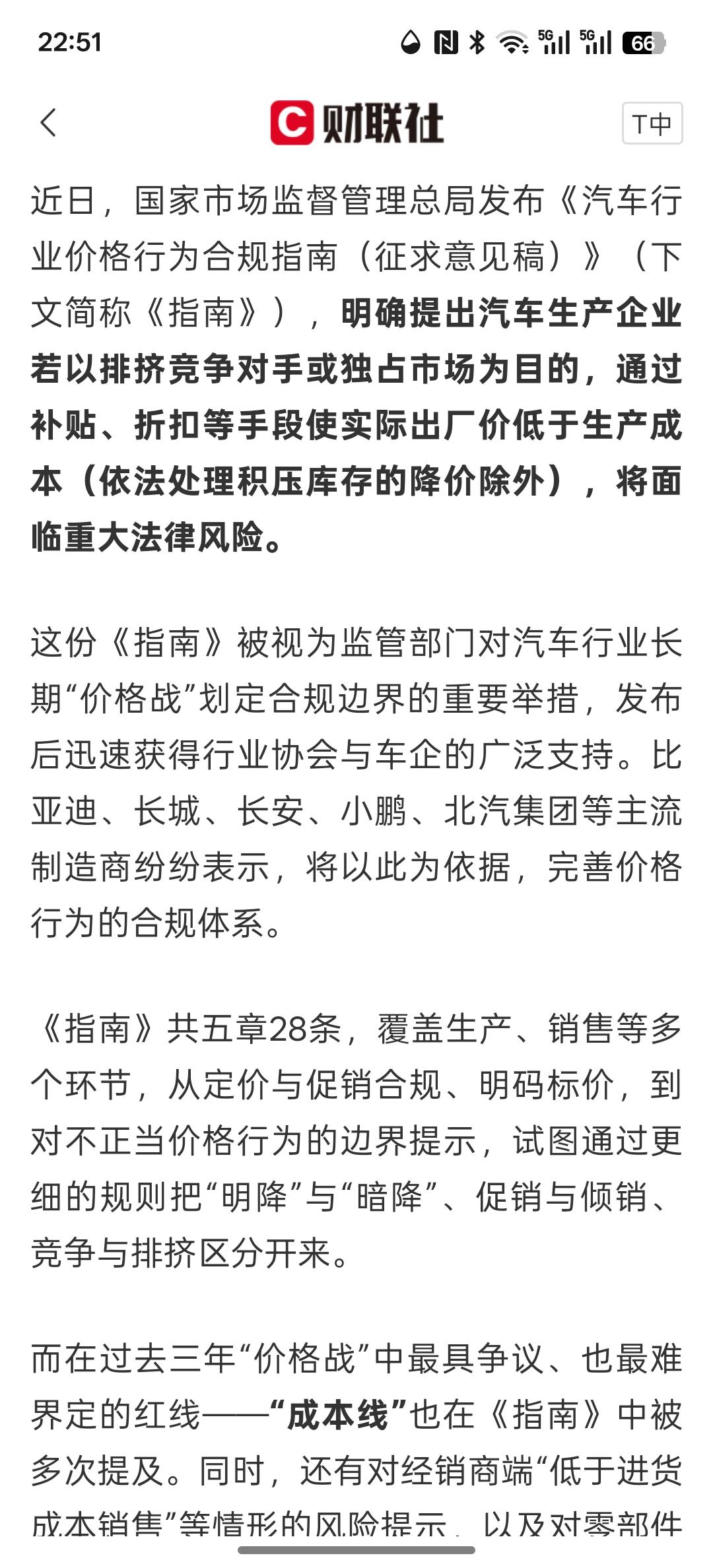 利好汽车行业,“亏本卖车”或被禁止:红线之下,车企如何突围?搞价格战为了抢夺占领市场,将面临法律风险,现在中国汽车行业要开始规范价格,如果汽车行业如此恶性竞争,导致汽车产业链的厂商都赚不到钱的话,这个行业将会出现巨大问题。所以这种内斗的方式不可取,要的是让整个产业链,整个行业健康发展,就必须得遏制这种恶意搞价格战!汽车行业本部盈利稳步增长稳步发展!整个汽车行业才能持续健康发展! 中国的汽车工业已经有了自己的品牌效应