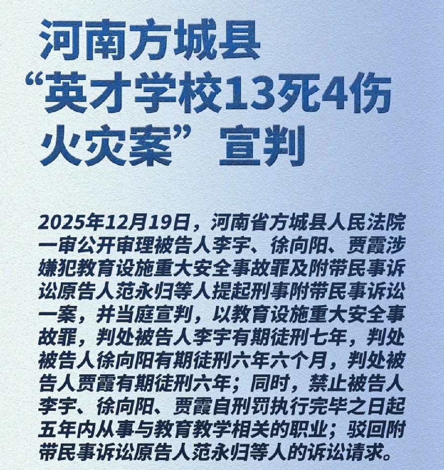 方城火灾宣判,学校创办人李宇被判刑7年!顶格判的!55岁,看着挺老实本分,打扮气质,很像乡镇老师,从事发后就被抓捕,已经快2年了,也算刑期,所以再坐牢5年,出来正好60岁退休年纪!不过余生也不好过,这么大事故,赔了约1700万,学校也干不成了,不说一屁股债,手里肯定也没钱了!学校没管理好,咎由自取!