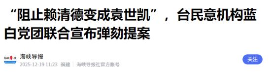 “阻止赖清德变成袁世凯”,台民意机构蓝白党团联合宣布弹劾提案   12 月 19 日台北的阴雨里,国民党与民众党联合记者会上的这句话,像根尖刺扎破了赖清德当局的 “民主伪装”。   一百多年前袁世凯靠强权践踏宪政,如今赖清德用 “不副署、不公布、不执行” 的三板斧,把台湾地区 50 多年的权力制衡传统劈得粉碎。这场由 “财政收支划分法” 修正案引爆的弹劾风暴,本质上是台湾社会对 “绿色独裁” 的集体反击。   很少有人知道,让赖清德敢冒天下之大不韪的 “财划法” 修正案,核心其实是 “县市钱袋子” 的控制权。   按照蓝白推动的新版本,台当局要把更多计划型补助款直接拨给县市,避免被民进党用财政手段操控地方施政。对赖清德来说,这无疑是断了 “以钱控权” 的路子 —— 毕竟他连 1.25 万亿军事预算都要硬塞,怎肯把财源分给反对党占优的县市?   更耐人寻味的是时间线。11 月 14 日法案三读通过,民进党 12 月 5 日复议案被蓝白否决,12 月 15 日成了法定签署的最后期限。   赖清德先是摆起 “协调” 姿态,邀民意机构负责人韩国瑜 “茶叙”,被戳穿是 “鸿门宴” 后干脆破罐破摔:行政机构负责人卓荣泰直接宣布 “不副署”,赖清德本人则拒绝公布法案。这种操作连李登辉、陈水扁都没敢尝试,堪称台湾地区领导人的 “创举”。   弹劾不是突然发难,而是蓝白对赖清德 “三连击” 后的致命一击。在此之前,他们刚联手封杀了赖清德的特别军事预算,又推翻了民进党砍杀军公教年金的政策。   当赖清德用行政权否定立法权时,国民党主席郑丽文直接点破:“这不是政策之争,是毁宪乱政”。   民众的反应更说明问题。弹劾联署从 18 日下午启动,5 小时内从 70 万飙到 120 万,当晚突破 135 万,网站因流量过载多次瘫痪。台湾前民代蔡正元在节目里直言:“这是民怨烧到了沸点”。   网友留言里,“独裁必亡”“让他成首位被弹劾的罪人” 的呼声,比任何政治表态都更刺耳。   最讽刺的细节藏在法律条文里。赖清德当年做民意代表时,曾投票支持 “弹劾案须被弹劾人列席说明” 的规定,如今轮到自己头上,却成了第一个要面对这条规矩的地区领导人。   更严重的是,根据台湾 “宪法” 释字第 735 号解释,行政院本就该对立法机构负责,法律案经三读通过后,除非提请覆议且获三分之二支持,否则必须执行。   赖清德的操作完全绕开了法定程序。他既不提请覆议,也不说明理由,只靠一句 “窒碍难行” 就否定法案,这在台大法律系教授看来,“比陈水扁的‘国务机要费案’更践踏法治”。   国台办发言人陈斌华的评价一语中的:“在岛内实行威权统治,不断制造绿色恐怖”。   蓝白用 “袁世凯” 作比,绝非夸张。清末袁世凯靠强权架空议会,如今赖清德用行政权碾压立法权,两者都是 “权力凌驾法律” 的逻辑。   更值得警惕的是,民进党民代还在鼓动赖清德 “扩大反击”,打算连年金修正等法案也一并否决。这架势,像极了袁世凯解散国会前的步步紧逼。   但时代早已不同。当年赵炳麟弹劾袁世凯要冒杀头风险,如今台湾民众轻点手机就能参与联署。   当年袁世凯能靠北洋军压制反对声,如今赖清德连行政系统都未必完全掌控 —— 有行政机构官员私下透露,“不副署” 的指令让基层无所适从。   弹劾案接下来要过监察机构审查,再送 “司法院” 审议,流程至少要半年。赖清德大概率会硬撑到底,甚至可能像网友担心的那样,用 “台独” 议题转移焦点,就像当年袁世凯用对外扩张掩盖内政危机。但无论结果如何,这场风波已经撕下了两层伪装。   一是 “民进党护民主” 的谎言,连立法机构通过的法律都能随意否决,谈何民主?二是 “赖清德温和” 的假象,从 “备战谋独” 到 “毁宪乱政”,他比蔡英文更激进。   就像 “尼米兹” 号摔机暴露了帝国衰落的真相,赖清德的 “不副署” 闹剧也让台湾社会看清:真正的威胁从不是两岸议题,而是有人为一党私利,把台湾的宪政根基挖成了深坑。