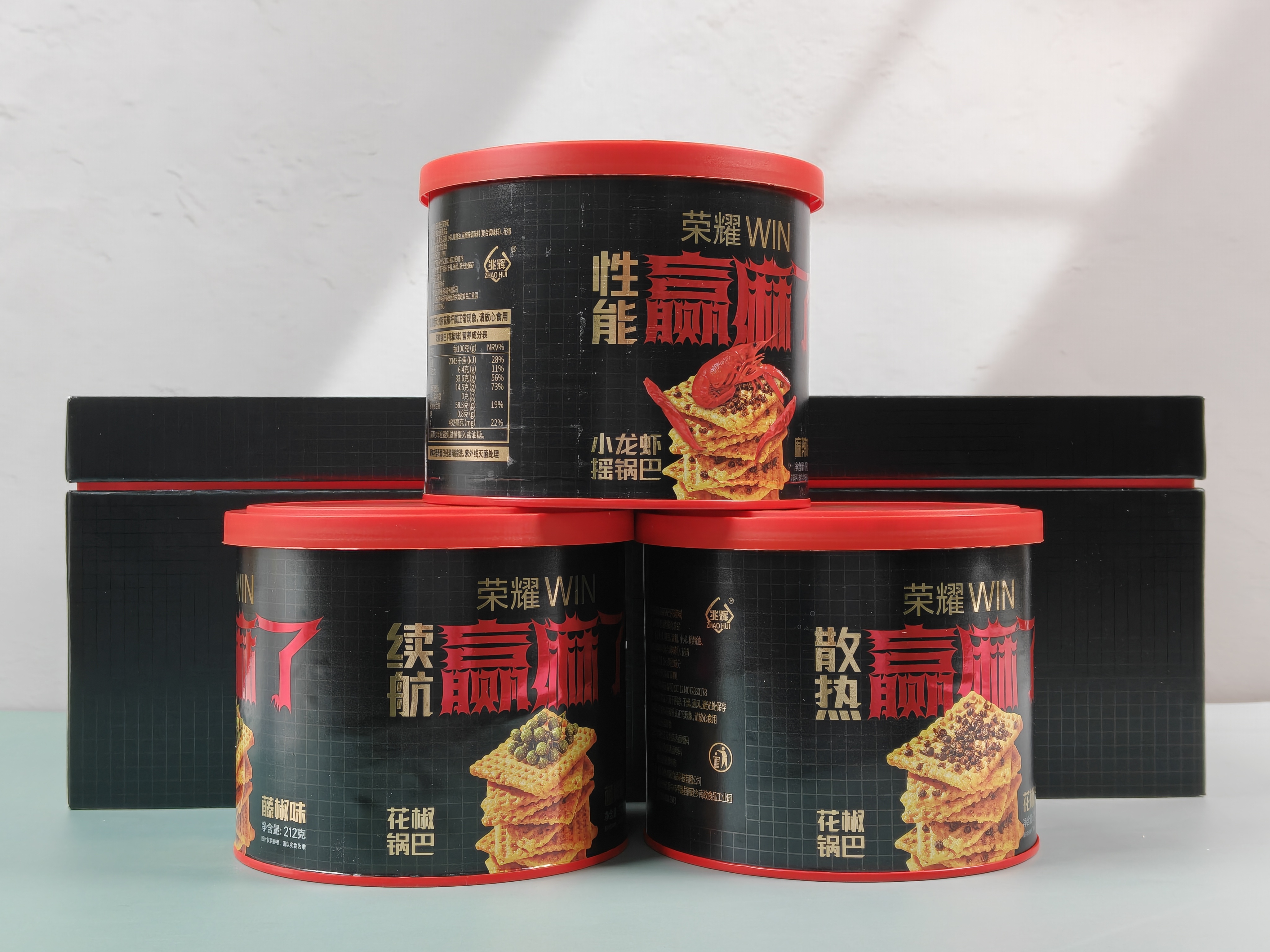 哈哈,收到了荣耀WIN系列的礼盒,打开就是『赢麻了』,里面是三桶锅巴,分别代表性