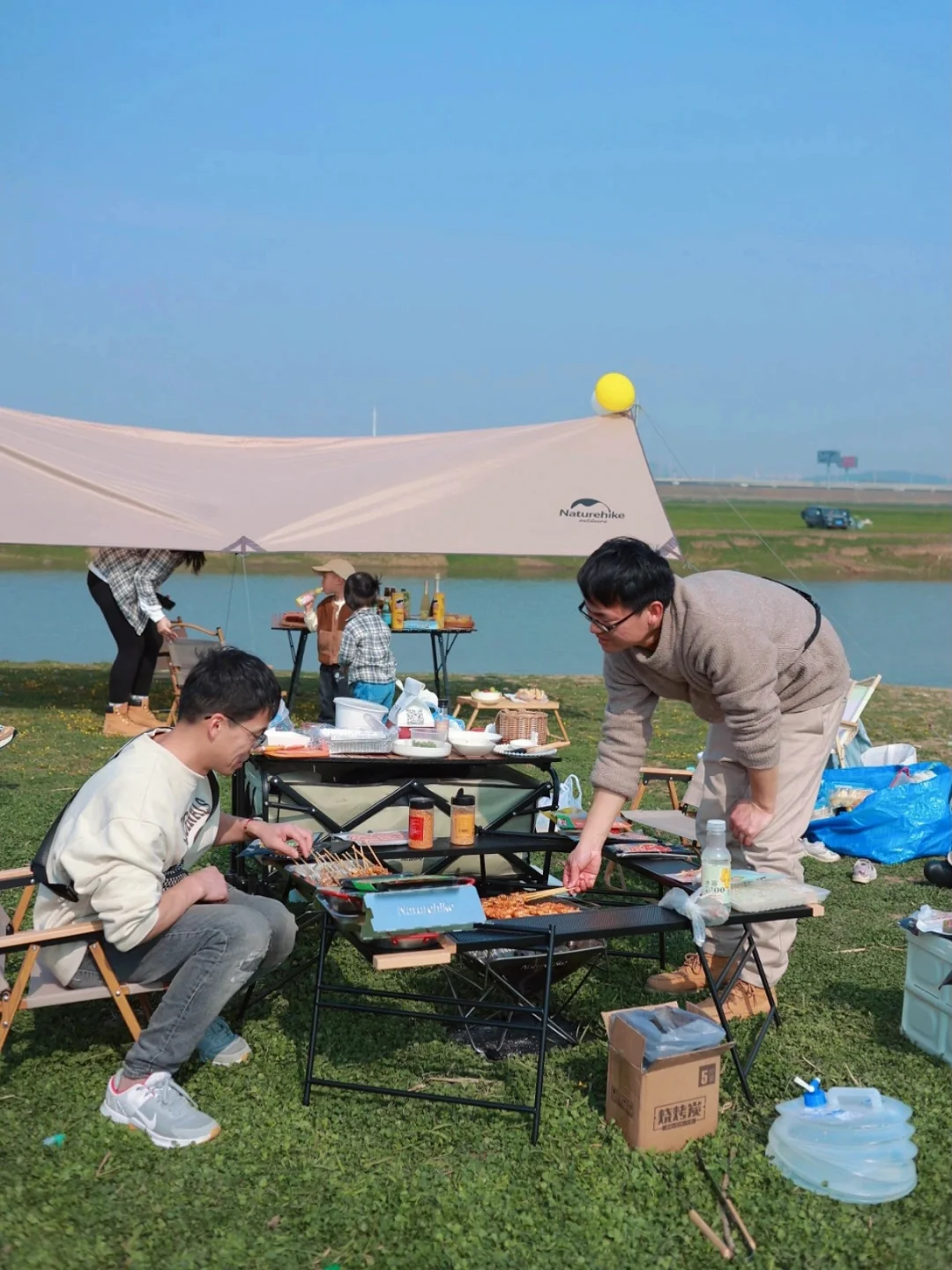 🍃我们是四个家庭带娃来这里野餐露营的,因为草地很平坦也很大,所以娃到处跑也不用担心会有危险⚠️草地里面很多小螺蛳,小盆友们一个个都拿着碗捡螺蛳,对他们来说这里比游乐场更好玩😃看到还有好多人在挖野菜