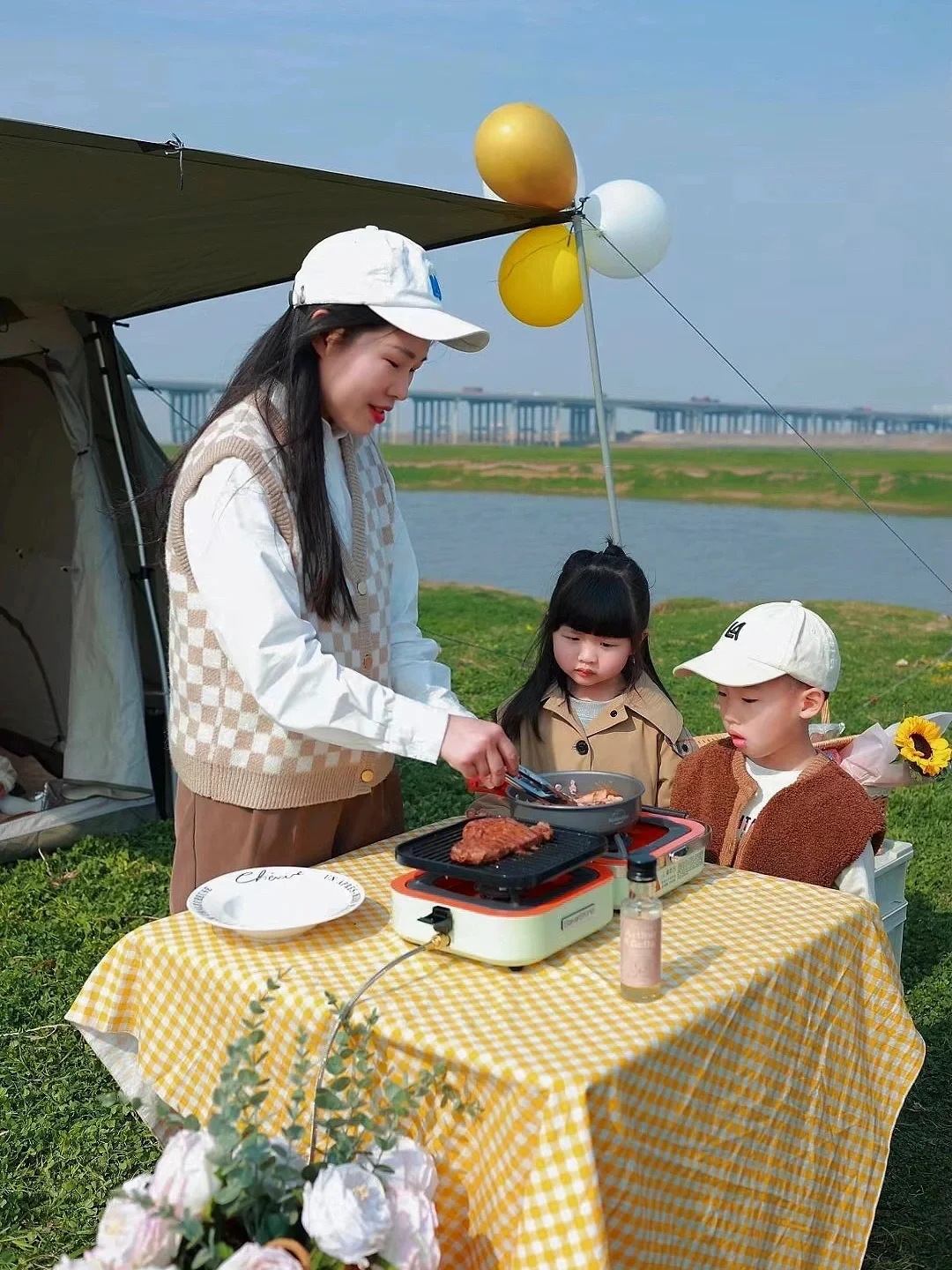 🍃之前分享过好多适合露营的地方,但是这里是唯一一个可以生火烧烤的位置,所以这次带了烧烤的东西,还带了野餐炉,双头的炉子真的很方便,两边可以一起煮,一边给宝贝们煎牛排,另外一个锅可以煮我们的火锅🍲野外撸串吃火锅的感觉真的很赞🥰
