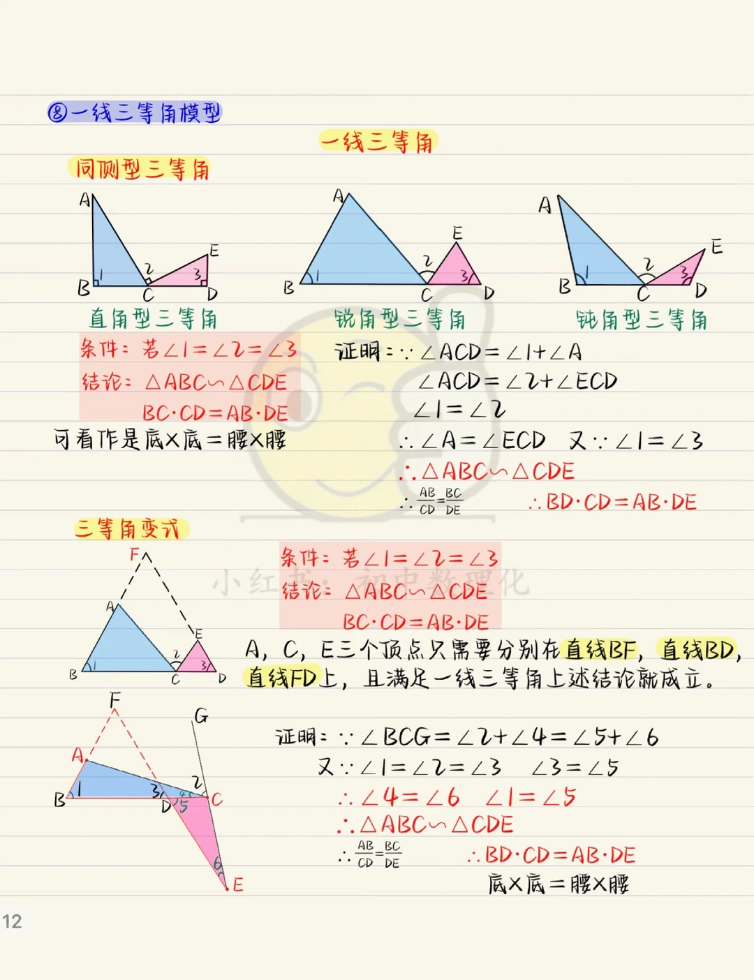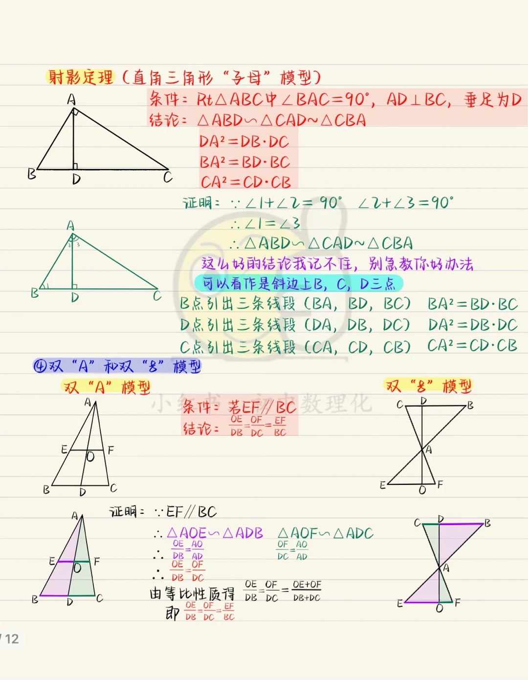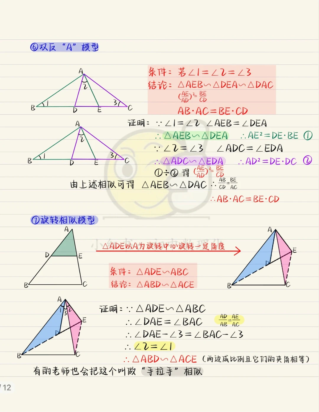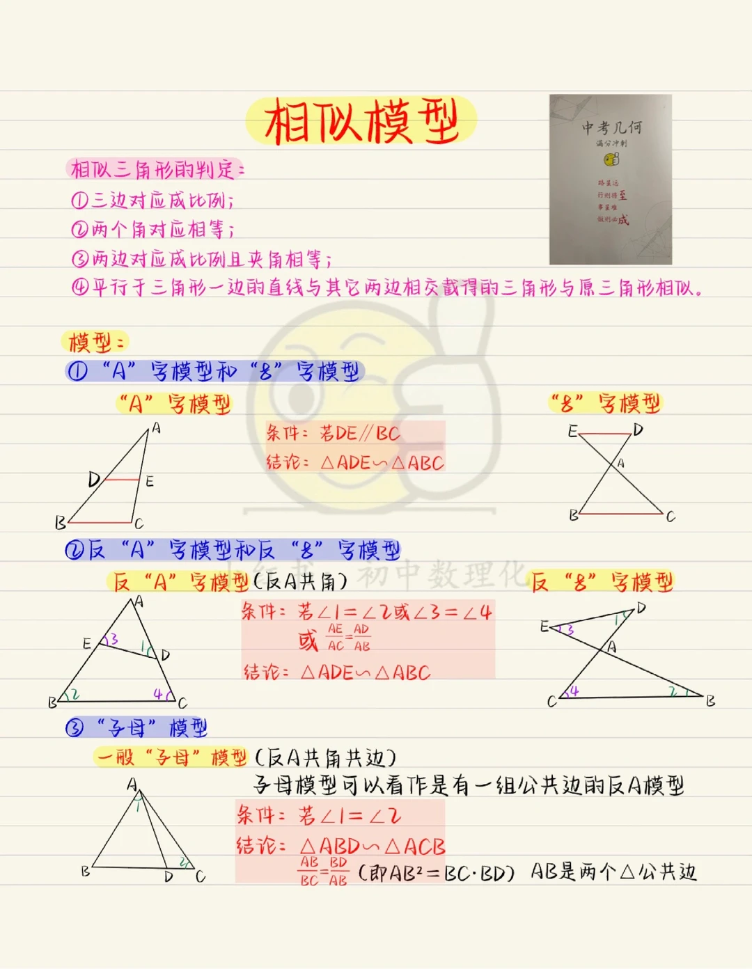 这么详细,涵盖了所有的相似三角形模型,别说你看不懂,看不懂,那就多看几遍,直到你看懂为止。