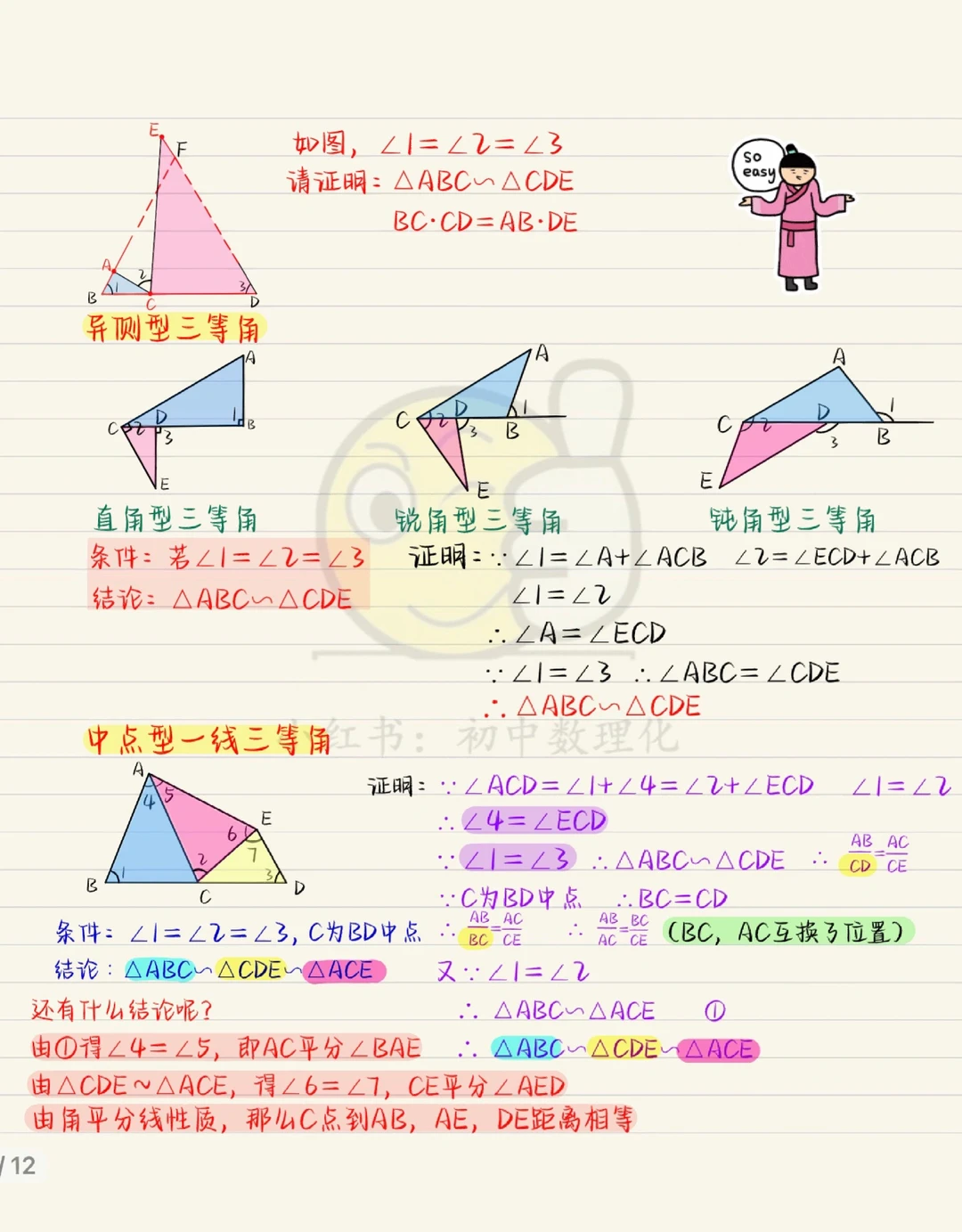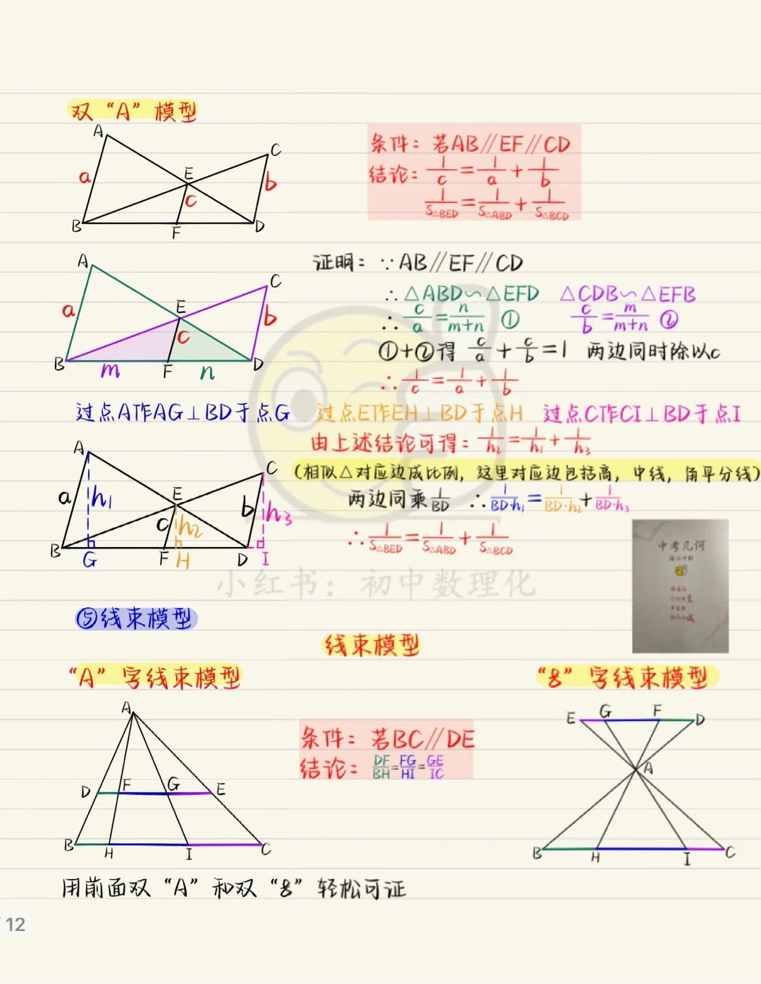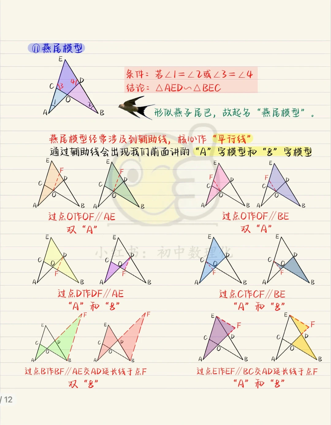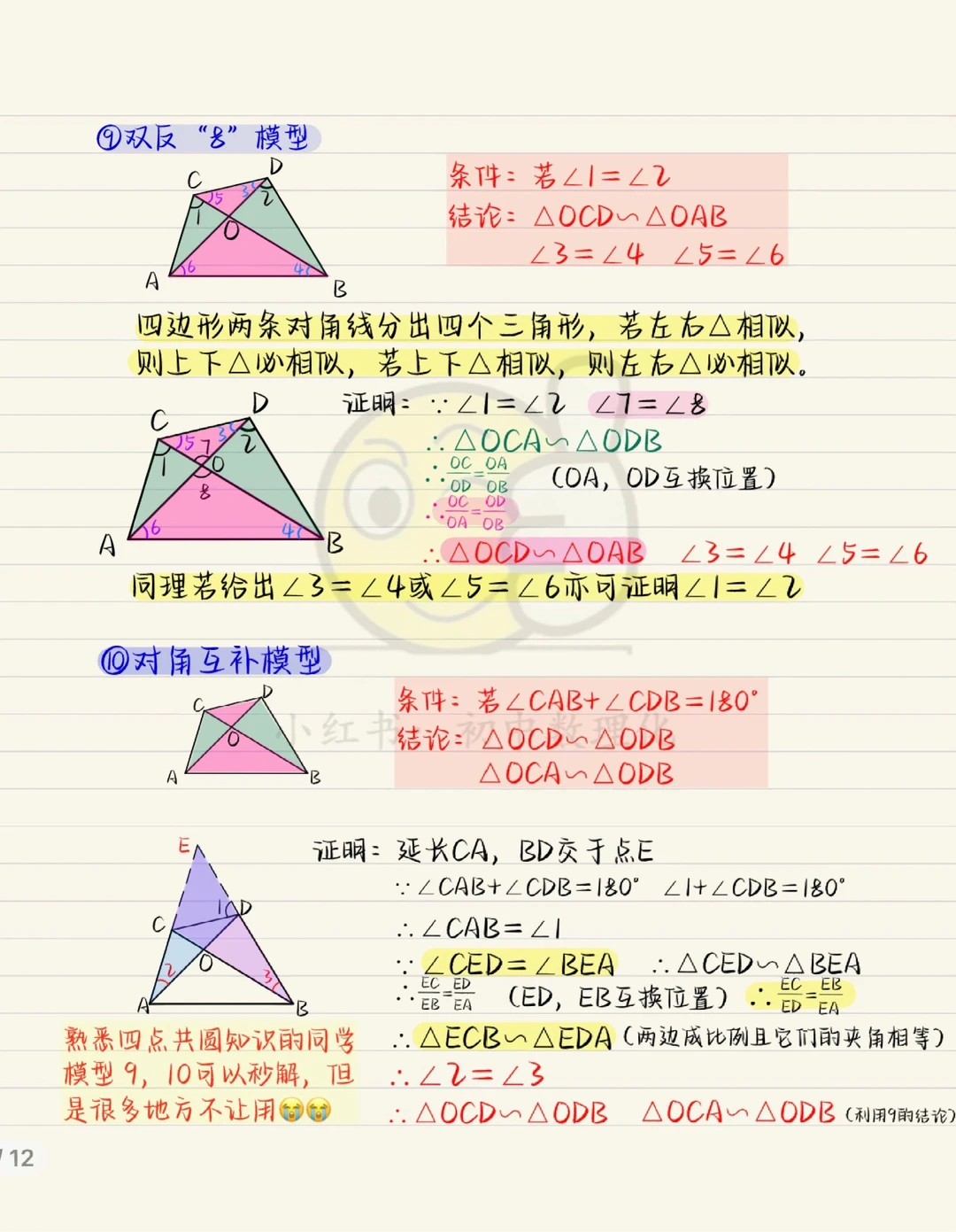 这么详细,涵盖了所有的相似三角形模型,别说你看不懂,看不懂,那就多看几遍,直到你看懂为止。