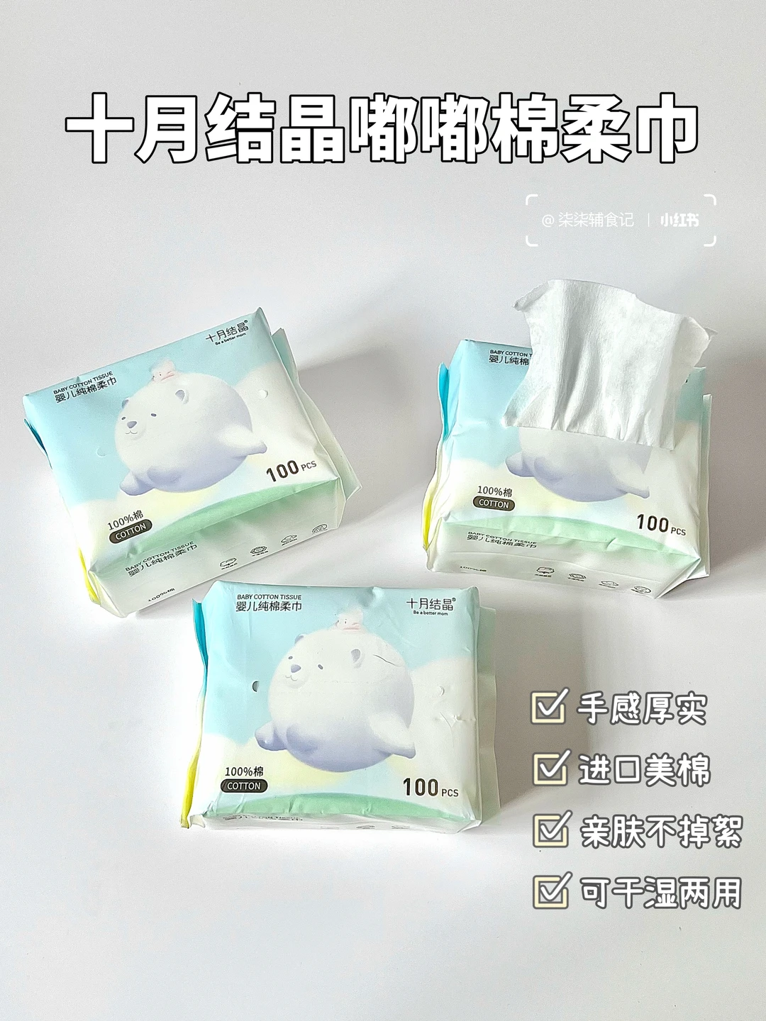 一物多用,平时给宝宝擦脸擦PP都舍不得扔掉,还能继续擦擦桌子、擦擦玩具、镜子…我还会拿来卸妆~实用又方便~