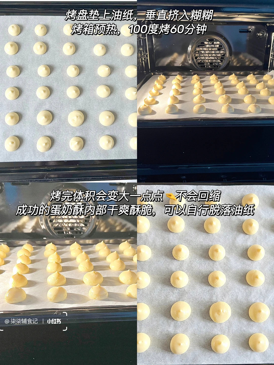 ▫️烤盘垫上油纸,垂直挤入糊糊,烤箱预热100度烤60分钟✅
