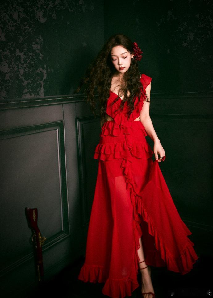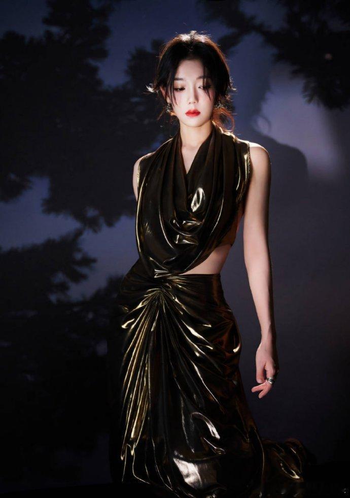 但凡张天爱身上有一点赘肉都穿不了这个衣服