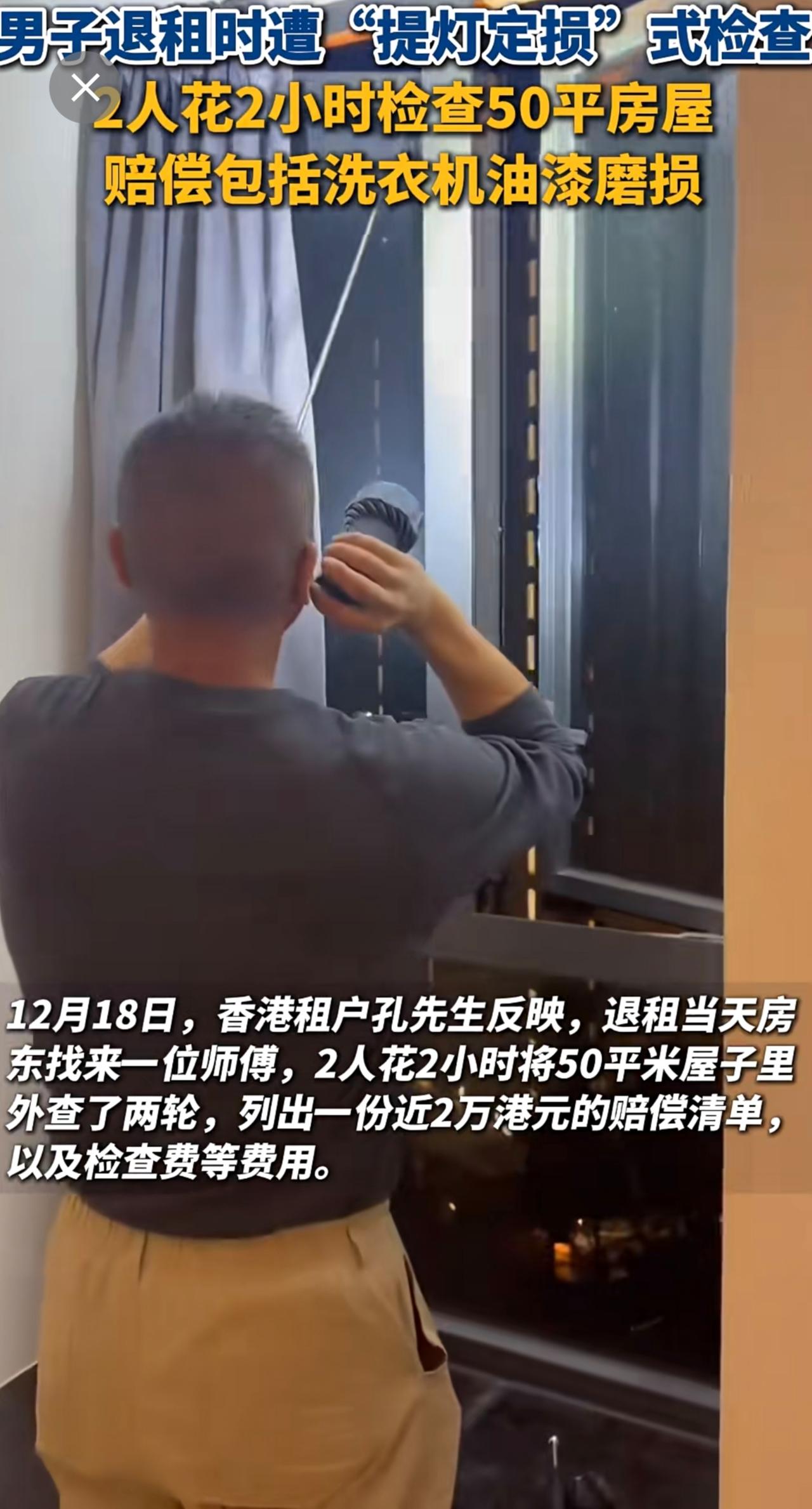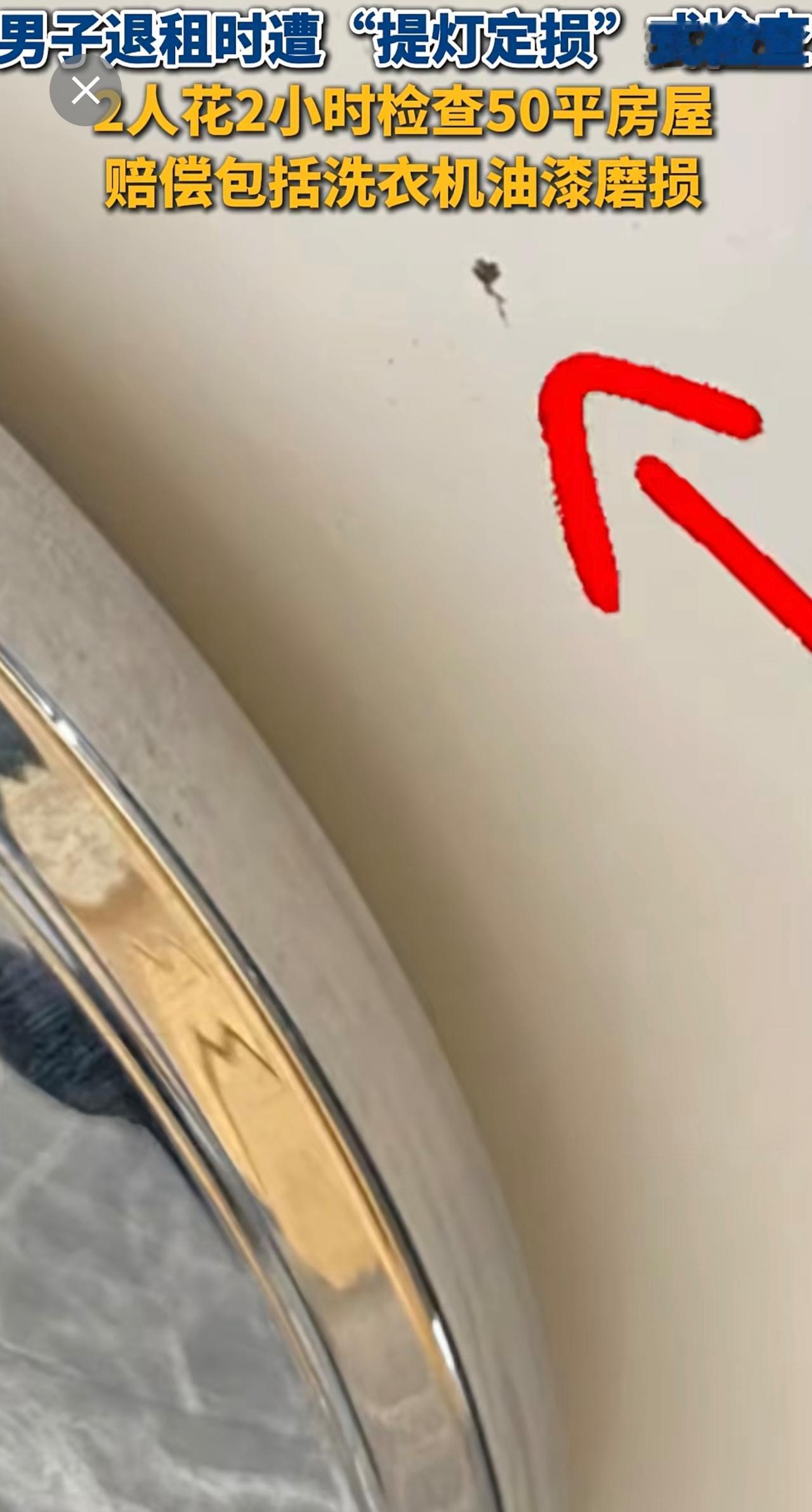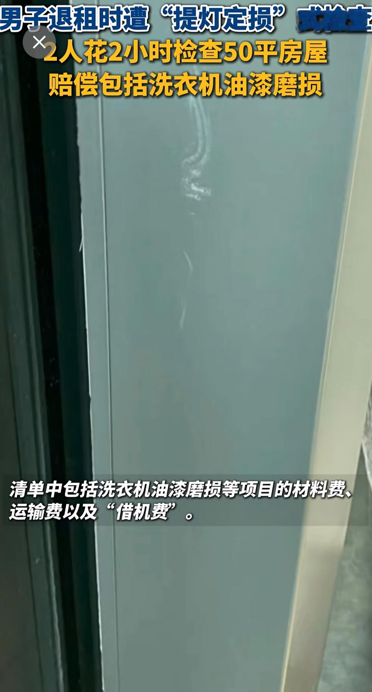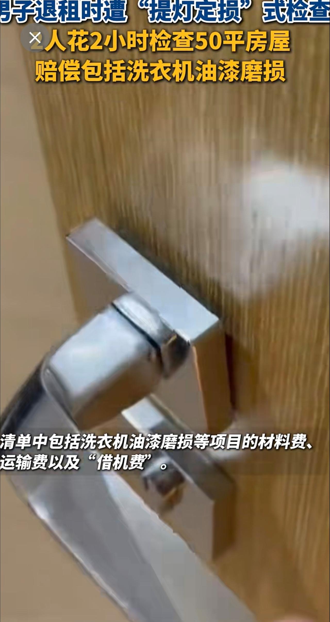 男子退租时遣“提灯定损式”检查 2人花2小时检查50平房屋 赔偿包括洗衣机油漆磨损