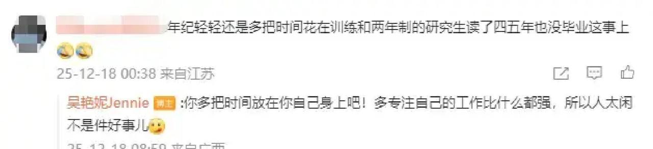别再争论吴艳妮了。 你们吵错了对象。 她晒出九宫格,你质问“训练了吗?毕业了吗?”。她回怼:管好你自己。 这不是运动员失格,是“榜样”的剧本过时了。 1. **你的愤怒,源于剧本失效** 你习惯的运动员,是苦行僧。沉默、坚毅、只有国旗和汗水。 吴艳妮打破了剧本。她涂指甲、拍写真、情绪上头就大哭。你的本能反应是:她“不纯粹”了。 但北京体育大学对运动员有弹性学制,延期毕业是常态安排。中国田协的商业活动,也要求报备合规。她没犯规,只是没按你的想象活。 2. **体制已在转身,而你还在旧规则里** 中国田协开商业开发会,世界田联的积分赛程排到巴黎。新时代的运动员,本就是“竞技成绩”与“个人品牌”的双轨赛跑。 你说她营销过度?数据是:2亿阅读量。巨大的关注,本身就是一种全新的赛场资产。 问题不在于她是否商业,而在于她的成绩能否撑住关注。2024年南京室内赛,才是真正的考场。 3. **我们需要的,不是另一个“模板”** 过去,我们把运动员造成神像,要求他们只有集体叙事。 吴艳妮们正在撕掉标签:我要赢,也要美;我为国争光,也为自己活。这恰恰是进步——体育回归于人,而非塑造图腾。 当潮水转向,指责泳姿是徒劳的。 与其苛求一个完人,不如期待一个真实的赢家。