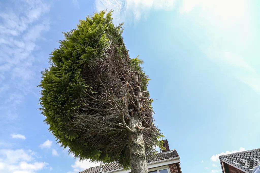 因为一棵树,邻里双方吵了3年,然后门口的树被砍掉一半! 这是英国谢菲尔德郊区沃特索普某个社区非常有名的一个打卡点,图片里的这棵只剩一半树冠的冷杉树,在这里已经生活了25年,2021年因为邻里纠纷,被人为砍掉了一半。 冷杉树原则上属于米斯特里夫妇,也就是图片左边房子的主人,砍树的是右边的邻居——李氏一家。 过去两家关系很和睦,慢慢的,树越长越茂盛,树冠已“过界”延伸到了邻居家。 而树冠的下面,正是邻居家的车位,这就导致邻居的车总被树上掉落下来的鸟粪砸中。 双方多次协商,均无结果。 一方坚持要保留这棵树,另一方则以停在树上的鸟太吵、粪便太多为由,希望邻居砍掉树木。 一吵就是好几年,也因为这棵树,两家关系变得很紧张。 然后,在某一天,树突然就变成这样了。 因为造型奇特,这棵树就成了当地的热门景点,还有人定期修剪,防止它恢复成原样。 有趣的是,这样的树不止这么一棵。 最后一张照片里只有一半树冠、长得像刷子的树,位于新西兰风最大的地区,它的造型完全出自大自然之手,和人类无关。