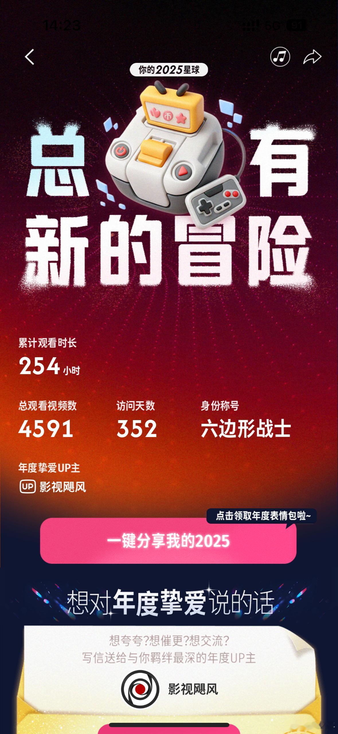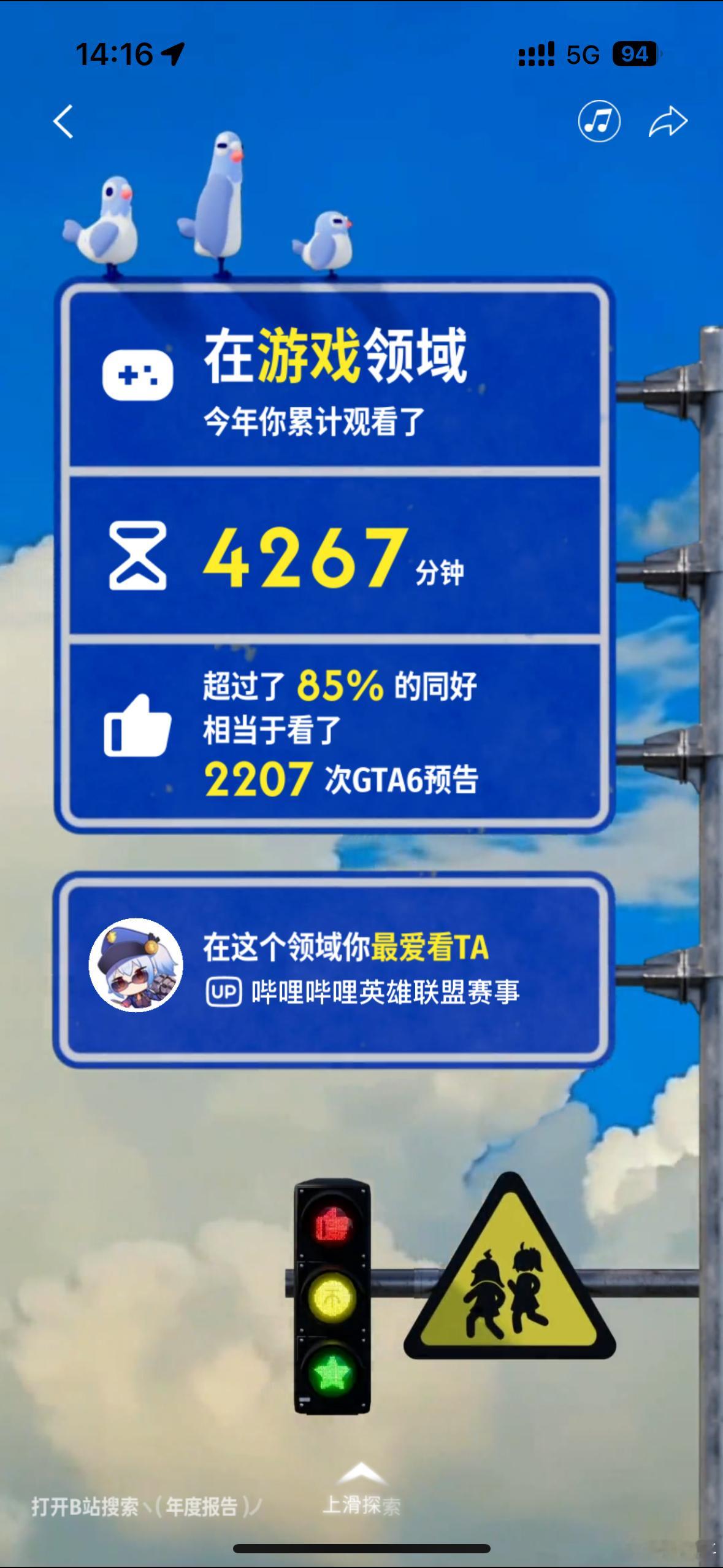 看了一下自己的B站年度报告,不出所料挚爱UP主必然是影视飓风。图2我称之为牛马最后的倔强,虽然已经没时间玩游戏了,但还是喜欢刷一些动态,尤其是今年LOL赛事还挺跌宕起伏的。图3是发现的宝藏UP主,记得刚关注他的时候还是个新人,内容分享做得非常扎实有趣,当时就看出潜力巨大,果然没走眼。 年度报告
