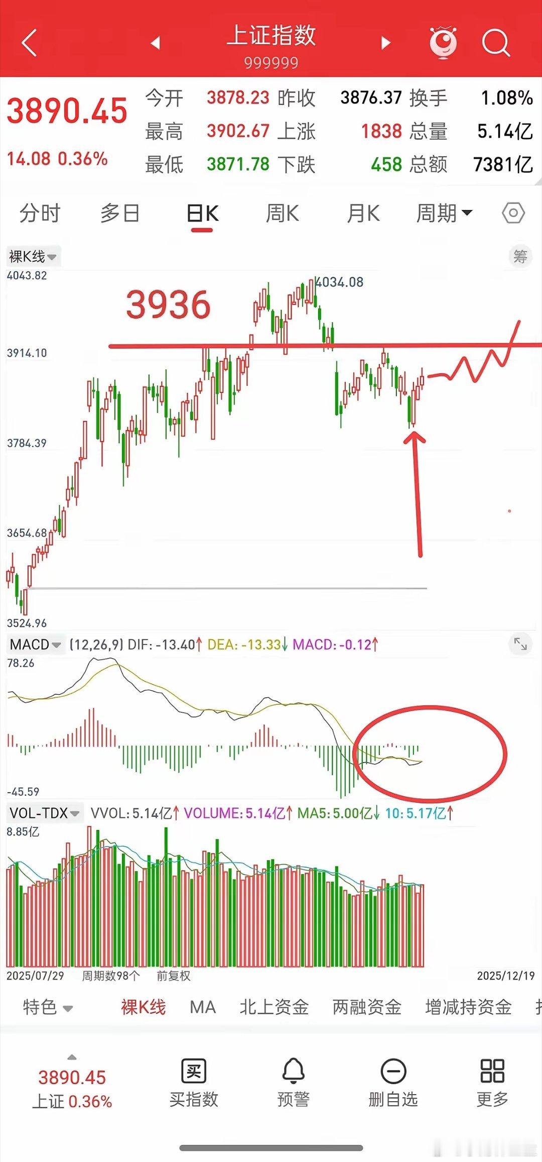 A股,中阳线确认行情,接下来或许历史总是惊人的相似!大盘连续三天阳线,相信很多人开始产生恐慌或者顾虑了,其实完全没必要。接下来行情无非就两种,要么直接继续上涨,要么小阴或小阳,震荡,但无论怎么震,怎么洗,后面都不可能跌破本周三那根阳线,甚至一半都到不了。可以回顾今年,前期任何一波行情,连续下跌之后,一根中阳线就是确认行情的,后面要么连续上涨,要么震荡几天,再拉升。因此,往下空间,并不大,但往上空间很大,3936颈线压力,我相信过不了多久就会突破,甚至挑战3985等。所以,对后市千万不要看大跌,凡是一味看跌的人,最终结果就是踏空,毫无疑问。