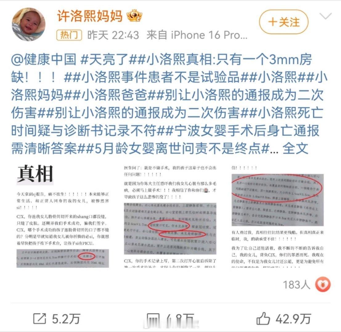 小洛熙真相 只有一个3mm房缺怎么会这样,太可怕了。相信法律 定会还小洛熙一个公道 深圳