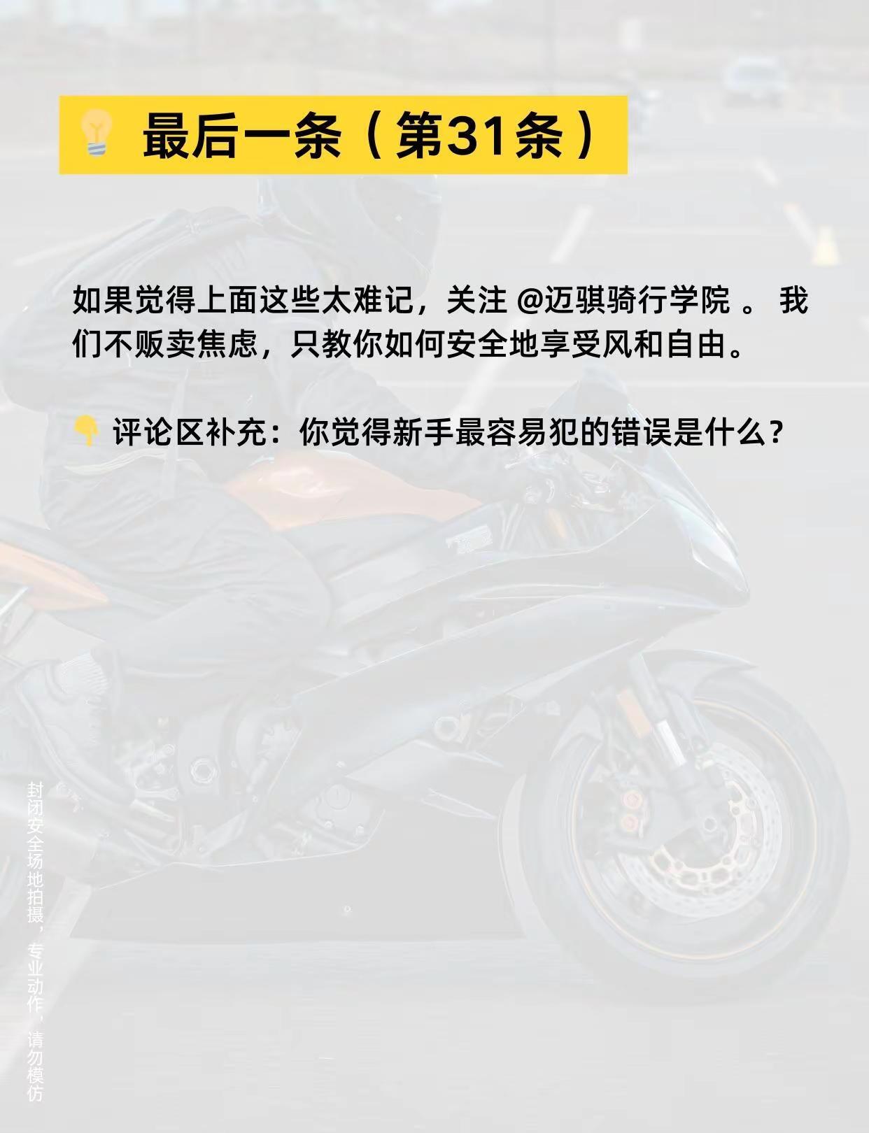 给新手摩友的31条忠告,关键时刻能保命。给新手摩友的31条忠告,关键时刻能保命机车 摩托车 女骑 上路 新手