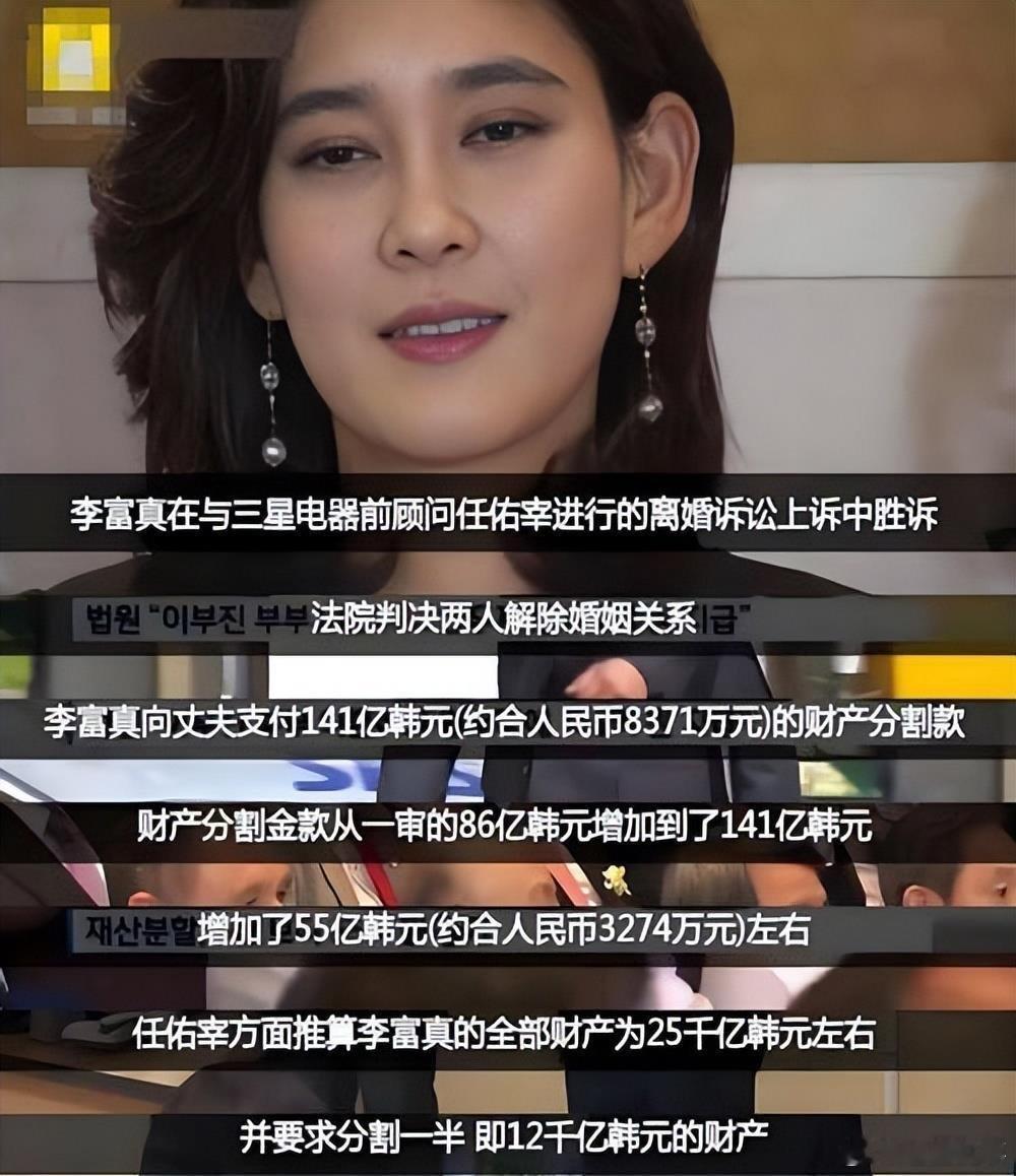 常看韩剧的人都清楚,在韩国那小小地儿上,财阀们的权势杠杠的,连政界的一些人物都得绕着走。提到韩国的公司,最让人熟知的非三星莫属。作为韩国最大的企业集团,三星去年整体营业额达到了令人咋舌的331万亿韩币,用我们国家的货币换算,差不多是1.7万亿那么多。如此惊人的收入,只能证明,三星集团无疑是韩国最领先的巨头企业。跟这家龙头企业比起来,观众们最关心的,还得说是三星的长公主李富真女士。老话说得不错,要让孩子从一开始就领跑,可李富真可不一样,她一出生就像站在了别人几辈子都追不上、无法企及的终点线上。别看李富真到40岁才成为三星旗下公司的第一位女总裁,可凭着三星集团长公主这个身份,再加上家族一些企业的控股,遲早,她会牢牢把这些企业攥在手里,绝不放松。可,这还不是最令人羡慕的地方,最让人嫉妒的,竟是李富真那副堪比顶级明星的天仙面容,五官精美又高贵大气,美得让人根本移不开目光。所以,从李富真开始接触社会的那一瞬间起,就成为了无数平凡人心中梦寐以求的女神,只能远远望着,连看上一眼都觉得奢侈得很。就是这样一位高高在上的女神,竟然也曾有过无法回头的婚姻故事,甚至还被狠狠勒索了141亿韩元的财产。这个让人气得牙痒痒的男人,就是三星集团电机副社长任佑宰。任佑宰长得不怎么样,年纪大了更带点油腻大叔的味儿,可偏偏这么个人,拿下了三星长公主,不但没好好珍惜,反而被贪心蒙了心,拼命想着怎么抢李富真的钱财。自1999年走到一起后,两人的感情一直算挺靠谱,也没怎么出过什么岔子。刚结婚的时候,任佑宰对这位千金公主可是宠得十足,李富真最开始也是真心付出,他还为任佑宰生了个儿子。没想到的是,随着时间一天天推移,任佑宰那点点心思也渐渐变得活络起来。2014年那会儿,两人就闹得挺厉害,离婚的事闹得挺僵,不过经过调解,勉强熬过了两年,算是撑了过来。任佑宰依旧觉得不服气,于是在2016年把老婆告到法院,最后法官判定儿子由李富真抚养。到了2017年,法院又对财产进行了划分,任佑宰分到了86亿韩元的家产。任佑宰对这个判决可不满意,便又提起了上诉。直到2019年,李富真被曝光滥用麻醉药,两人之间的离婚大战才算正式展开。在同一年5月29日,韩国某医师协会把李富真滥用麻醉药的事情,直接举报到了首尔检察院。后来调查一弄才晓得,怂恿那个护士爆料的,竟然就是任佑宰的律师。这律师那会儿正忙着帮任佑宰和李富真打离婚官司呢。这会儿,李富真和任佑宰的二审判决也弄出来了,任佑宰心愿达成,分到李富真141亿韩元,换算成人民币有8370万。对于这个判决,李富真挺满意的。别的啥都不说,141亿韩元对普通人来说是一大笔钱,但拿李富真来说,那点儿钱算啥呢,毕竟她在2016年的身家就有1.2万亿韩元,差不多就是九牛一毛。一开始,任佑宰盯上的就是李富真的那1万多亿财产,打算靠离婚来分点儿钱,可你别以为这么简单,三星集团可没打算吃这套。说到李富真滥用麻醉药的事儿,这事儿可不是一个普通护士能随意左右的。在2020年4月23日,首尔警方表态说:“暂时没有查到三星家族长女涉嫌注射违禁药物的证据”,这事儿也就算是告一段落啦。身价高达万亿,还是三星集团的长女,长得那叫一个漂亮,怎么也想不到,她的情路居然如此坎坷。这事儿真让人感到意外。沉寂了这么多年,李富真终于再次出现在公众视野,只不过如今她已经55岁了,早就不再是当年那个风光无限的样子。现如今,她看起来比同龄人要嫩不少,可一跟年轻时候比,颜值那叫一个差远了。前几天,李富真参加了给游客办的促销开幕仪式,从网友晒出的视频画面看,她那脸已经老了不少,皮肤松松垮垮的,还带点肿胀感。脸上的状态也没有以前那么紧致了,显得有点凹凸不平,感觉不太光滑。只能叹,岁月这把杀猪刀,真是谁都躲不过,曾经风光无限的三星长公主,如今竟变成这样,自己的青春也一去不返,都被任佑宰给浪费掉了。更尴尬的是,李富真藏了好些年的家族遗传病,也终于发作了。走路的时候,李富真的双脚非常怪异,特别明显的外八字,而且走起路来还一瘸一拐的,就像双腿有毛病似的。有人爆料说,这其实是李富真的家族遗传的病,叫做“腓骨肌萎缩症”。再说,出席活动的时候,李富真还穿着高跟鞋,结果走路确实受到很大的影响。年轻的时候,那绝对是神仙般的颜值千金公主啊,现在岁数大了,变成这个样子,真让人唏嘘不已。说到底,老天爷公平得很,谁都不可能十全十美,三星长公主也不例外。