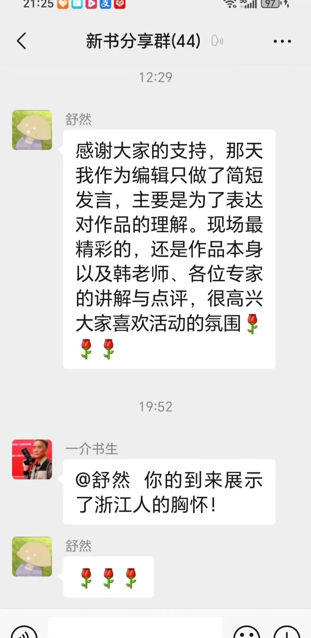 照片中的这个小茹凉,是浙江教育出版社编辑,拙著《窗扉的光芒与忧伤》责任编辑舒然老师,前几天她专程从杭州来到石家庄,参加在新华书店八度书屋举行的分享活动,并代表出版社向活动赠书,受到了大家的热烈欢迎,虽然活动结束了,但人们的热情不减,纷纷回忆舒然老师此次庄里行给大家带来的美好感受。其实,人生世间,真纯,善良,发善心,存善念,行好事,就是走遍天下广爱欢迎的“通行证”呢。舒然老师,咱们下次杭州西湖见!治愈的窗 盼盼阅读有感 漾舒敏 门窗张圆圆 卓然舒意薇 飞飞玫玫 温瑜漾 舒楠作品