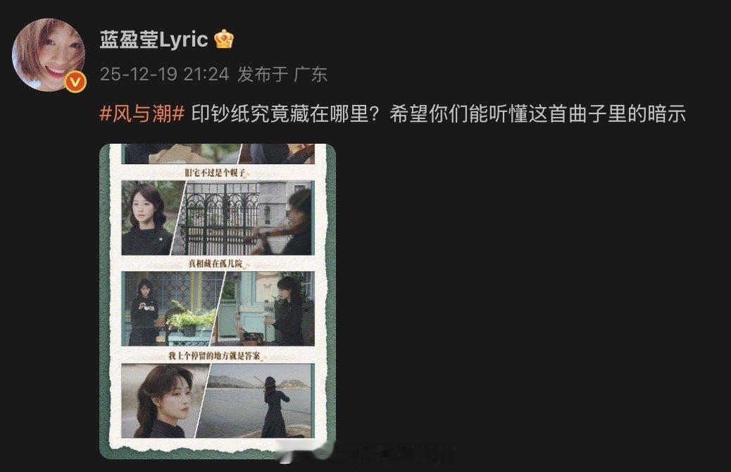 蓝盈莹说希望你们懂我的暗示风与潮 乔音婉的琴里全是玄机,海边奏响《一路平安》不是伤怀,是跨越生死的兄妹密语,是敌人眼前的隐秘情报传递,更是给何贤的关键坐标,琴声落情报达,谍战高光与刀感齐发,剧情太值得细品