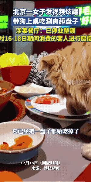 人是人,它是它,还是应该要有区分的,人和畜是不能共餐共饮共用盘子的。 她带着它,到火锅店吃火锅,店员和店长估计是知道的,它上了桌应该有店员看到的。所以,店家包赔客户也是应该的,店家自找的,不亏。 店家估计也没有想到,这女子事后还发视频进行炫耀的“毛孩子”……