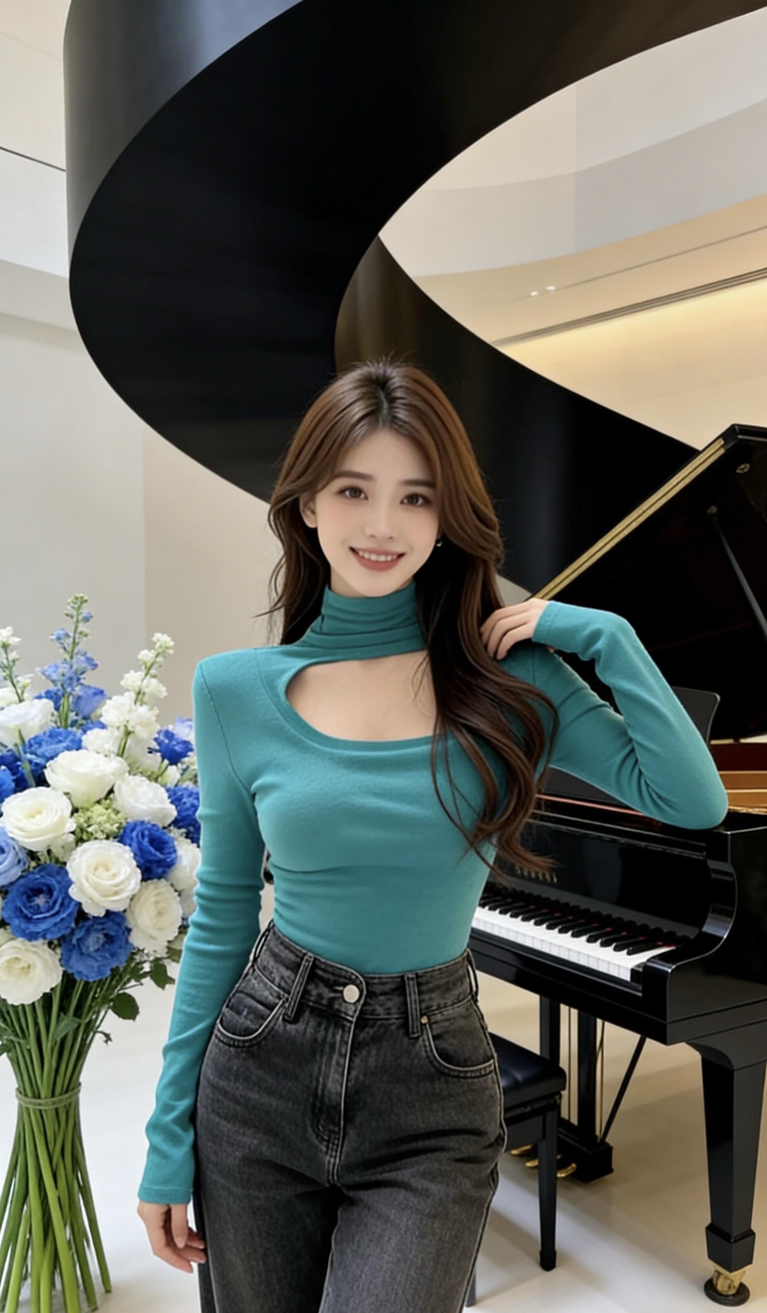 扎个丸子头,赴一场乡村的浪漫紧身牛仔裤性感丰满美女