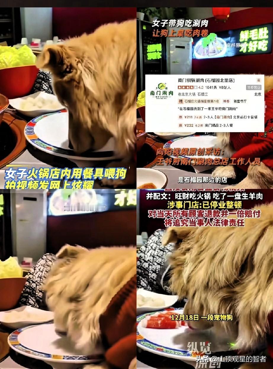离谱!女子带狗吃涮肉让狗舔盘子 回怼食客:你凭啥比狗尊贵? 火锅店涮肉吃到一半,直接把狗抱上桌,喂肉卷不算,还任由狗狗舔舐用过的餐盘! 邻桌食客看得膈应,忍不住提醒两句,她当场炸毛回怼:“你倒是拿出证据,证明你比狗尊贵!是会写字还是会说话?” 这话一出,直接引爆全网! 公共就餐区啊!宠物舔过的餐具,谁知道带着多少细菌寄生虫?这不仅是膈应人,更是赤裸裸危害公共卫生! 爱狗不是没底线,把自己的喜好凌驾于公共规则之上,还强词夺理歪理一堆,这哪是爱狗,分明是没规矩没素质! 好在火锅店够刚:当场给所有顾客免单,所有损失全算这女子头上!冤有头债有主,网友直呼大快人心! 现在养宠的人越来越多,但咱能不能拎拎清:爱宠的前提,是不打扰、不危害别人! 你遇到过公共场合的奇葩养宠行为吗?