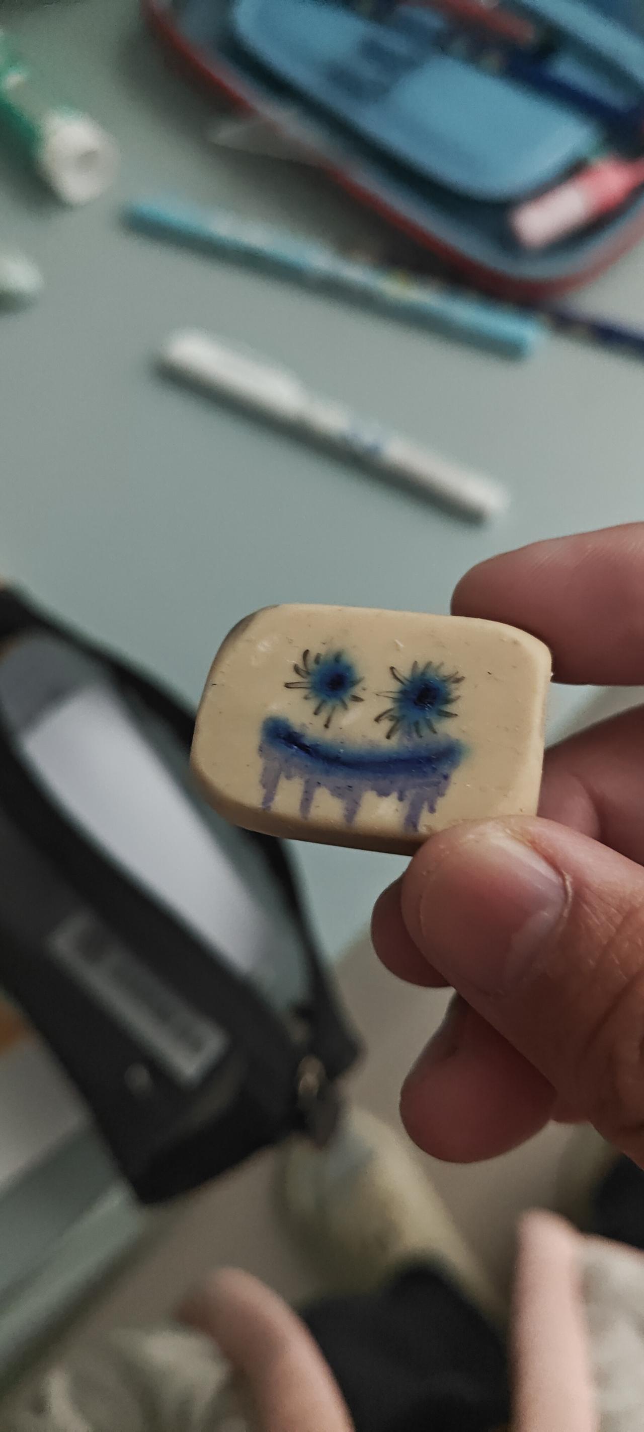 随手拿了块儿子的橡皮,这画风如同我儿时的顽劣。