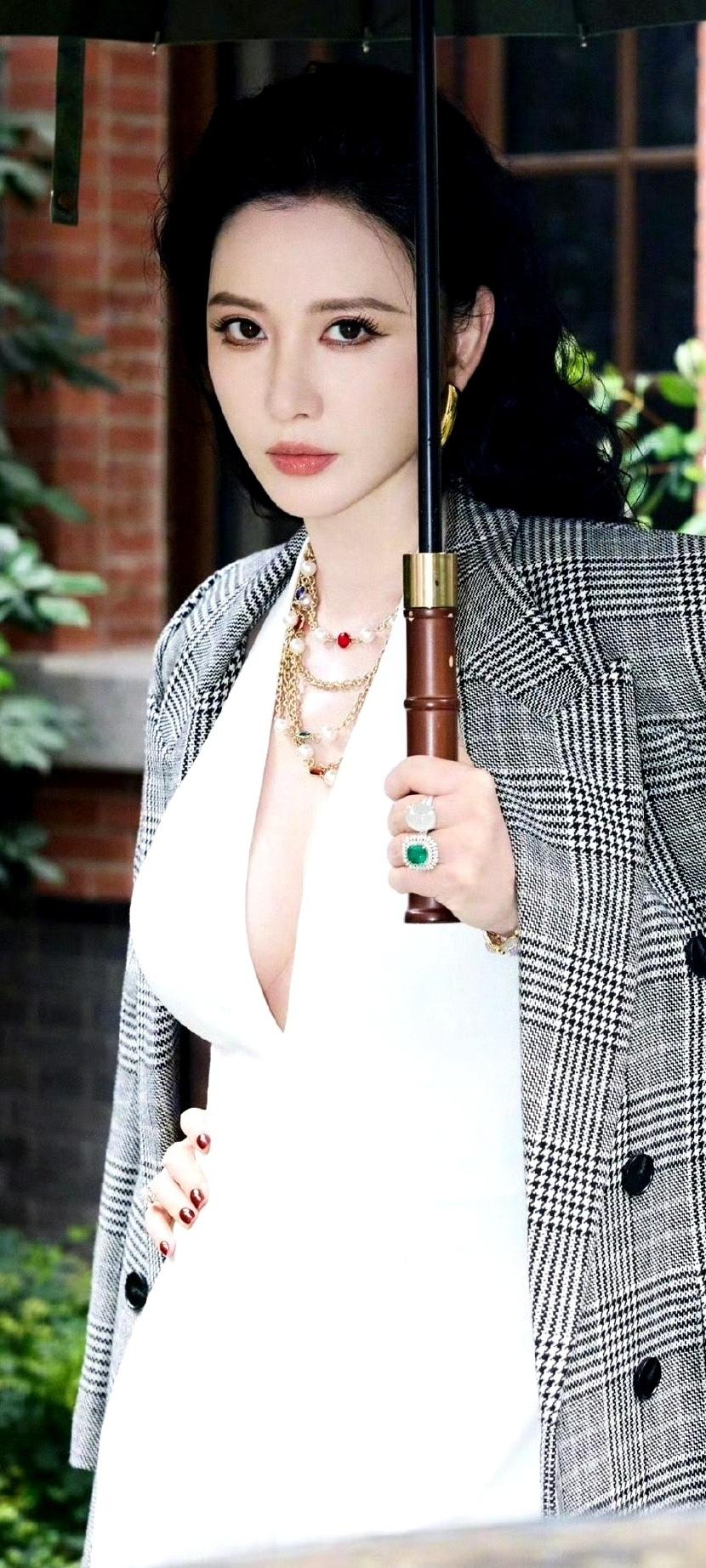 谁能拒绝张萌的御姐范儿?白裙配格纹西装美出新高度!张萌​​​张萌穿搭有什么