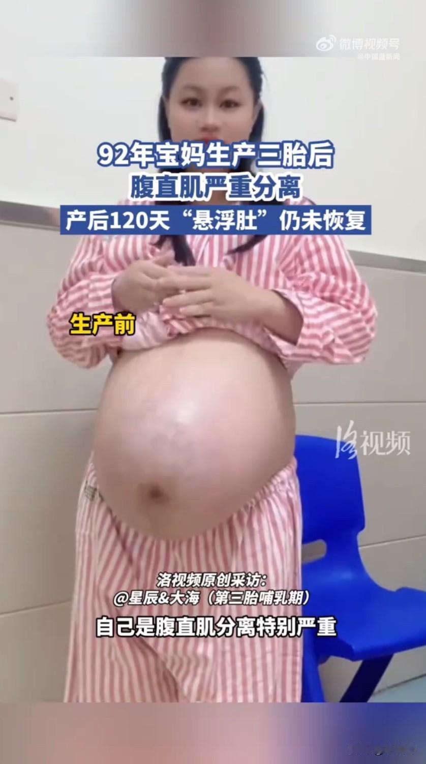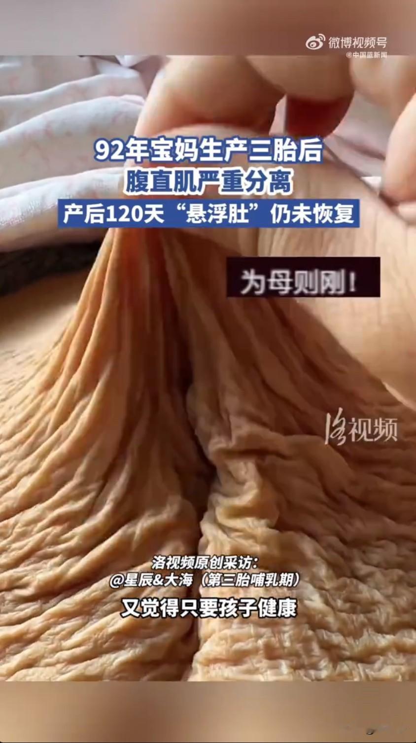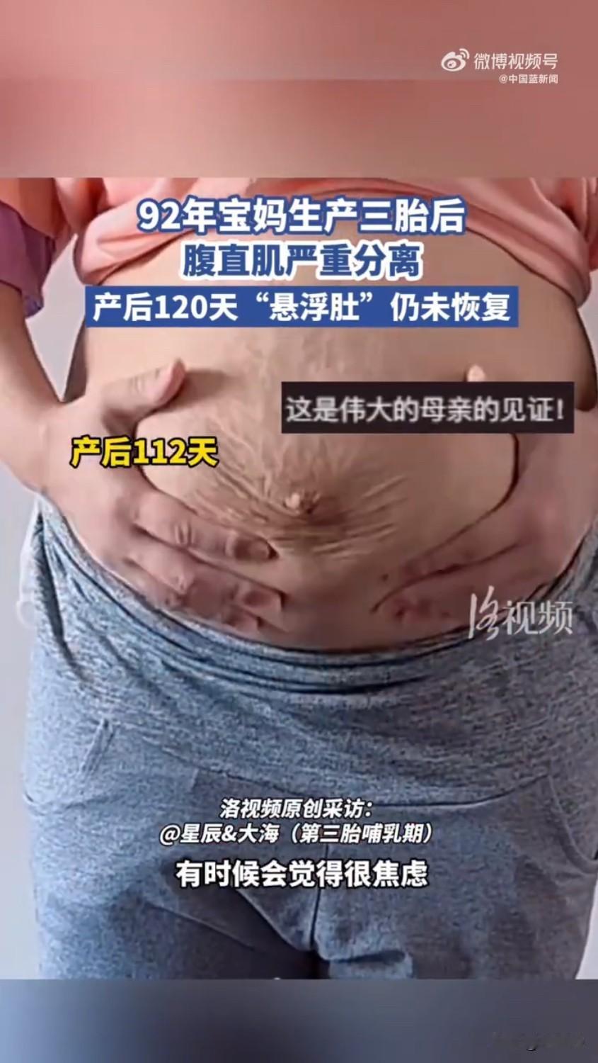广东一位92年的宝妈,生完三胎后遇到的情况让很多人看了都心疼,本来以为生完孩子肚子会慢慢收回去,可她都产后好几个月了,肚皮还是松松垮垮的,凸起的“悬浮肚”看着就像还怀着孕一样,穿再宽松的衣服也遮不住,去医院检查后才知道,这是腹直肌严重分离导致的,还伴随着内脏下垂的问题,平时不管是弯腰抱孩子,还是久站一会儿,都会觉得腰酸乏力,连简单的日常活动都受影响。 其实这位宝妈前两胎产后就有过轻微的腹直肌分离,只是当时没太当回事,也没做系统的修复。没想到怀三胎的时候,肚子被宝宝撑得更大,腹部肌肉承受的压力越来越大,之前的小问题就变成了现在的严重情况,可能很多人不知道腹直肌分离到底是什么,简单说就是我们肚子中间的肌肉,怀孕时被不断增大的子宫给撑开了,两侧的肌肉往两边分开后合不上,中间的筋膜变得松弛薄弱,内脏就没了足够的支撑,慢慢往下垂,肚子自然也就收不回去了。这种情况在产后妈妈中其实挺常见的,尤其是生得多、宝宝体重偏大,或者孕期体重增长太多的妈妈,出现的概率会更高。 虽然身体受着不少罪,但这位宝妈说起孩子的时候却特别温柔,她觉得只要三个孩子都健健康康的,自己所有的付出都值得;这话让很多妈妈感同身受,毕竟生孩子对女性身体的改变是实实在在的,除了松垮的肚皮,可能还会遇到漏尿、腰痛这些不为人知的困扰。不过大家也不用太焦虑,腹直肌分离并不是没办法改善的,现在医院的产后康复科都能做专业评估,通过仪器辅助、针对性训练这些物理治疗,就能慢慢帮助肌肉恢复。可惜很多妈妈要么不知道产后修复的重要性,要么被“当妈都这样”的说法糊弄,错过了最好的恢复时机,只能自己默默承受这些不适。 这位宝妈的经历也让更多人关注到了产后女性的身体困扰,原来妈妈们口中的“值得”,背后藏着这么多不为人知的辛苦。其实生育带来的这些身体变化不是什么“正常现象”,而是需要被重视、被干预的损伤。妈妈们爱孩子的同时,也该好好照顾自己,产后及时去做复查,有问题尽早接受专业修复,这不是矫情,而是对自己健康负责。毕竟只有妈妈身体舒服了、心情好了,才能更好地陪伴孩子长大,而家人也该多给产后妈妈一些理解和支持,帮她们分担家务、照顾孩子,让她们有时间和精力去做康复,不用独自扛下所有。三胎 来源:洛新闻