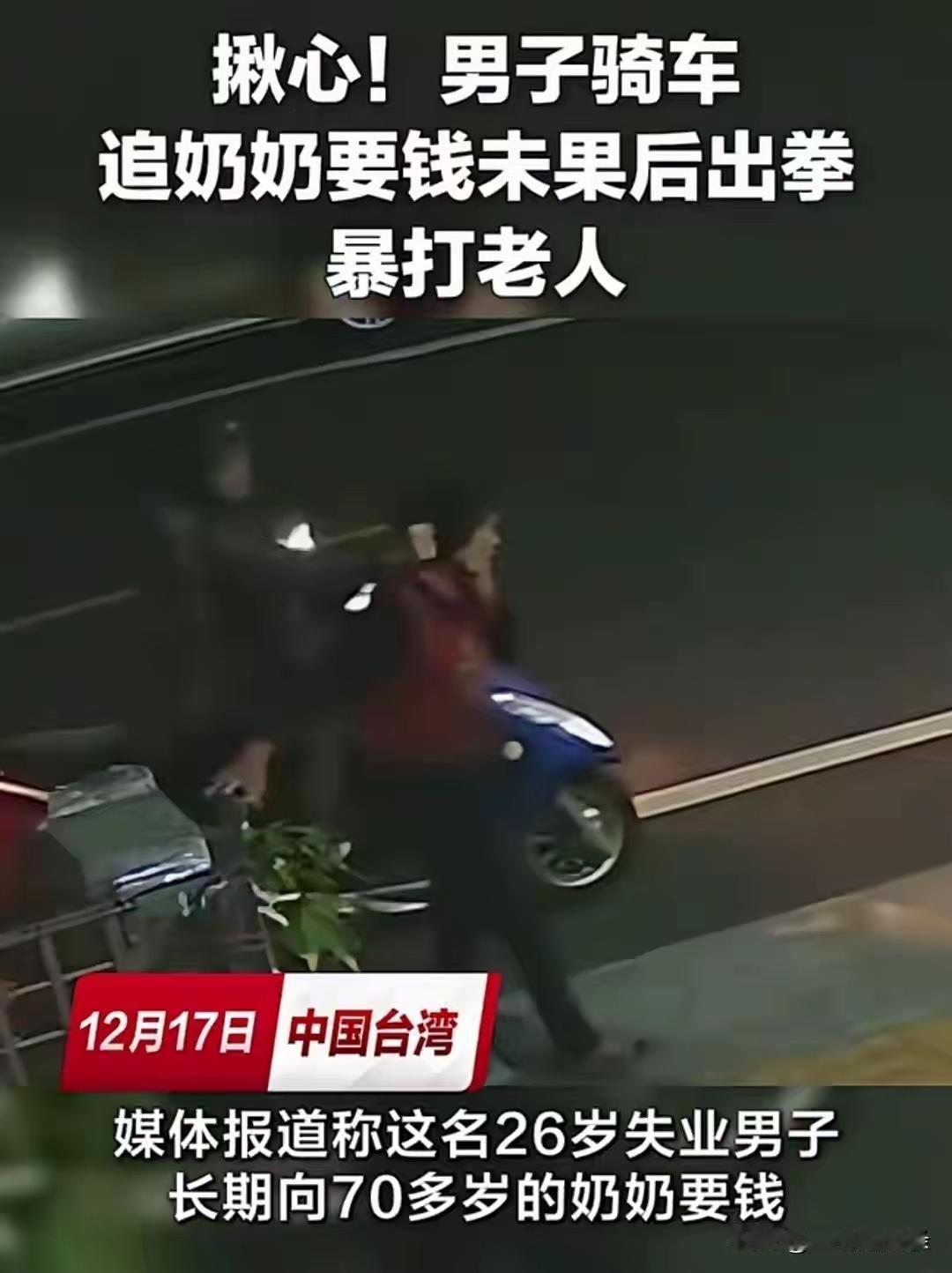 12月17日,台湾发生了一起令人发指的恶性事件,引发了社会各界的广泛关注和强烈谴责。事件的主角是一名男子,他骑着自行车,在街头追逐着自己年迈的93岁老奶奶。这一幕令人震惊,也让许多路过的行人感到愤怒和不安。 据目击者描述,当天男子骑车追赶老奶奶,似乎是为了要钱。事发时,老奶奶年事已高,行动缓慢,身体瘦弱,完全没有反抗的能力。然而,男子似乎执意要索取一笔钱,面对老人的拒绝,他的情绪变得越来越激动。甚至有人说,男子还不断大声喊叫,试图用言语威胁老人。可是,老人坚决不肯妥协,保持沉默,试图避免冲突。 令人无法接受的是,事情的发展远远超出了普通的争执。男子在追逐未果后,突然停下车,向毫无还手之力的老人挥出了拳头。据现场目击者描述,男子的动作非常暴力,他用力地打在老奶奶的脸上和身体上。老人顿时倒在地上,脸上、身体都被打得青一块紫一块。现场的行人都被这突如其来的暴力行为震惊了,纷纷上前劝阻,但男子似乎已经失去了理智,继续对老人施暴。 这起事件的发生,不仅令人心痛,也引发了网友们的愤怒和谴责。很多人在社交媒体上表达了对老人的同情和对施暴男子的谴责。有人指出,这样的行为令人发指,完全没有人性和道德底线。老人年事已高,身体虚弱,却遭遇如此暴力攻击,令人愤怒至极。有人呼吁相关部门要严惩施暴者,保护弱势群体的权益。 事件发生后,警方迅速介入调查。根据目前掌握的情况,警方已经对男子进行了拘留,正在进一步调查他的动机和背景。据了解,男子有一定的经济压力,可能因为一些经济问题而情绪失控,但这绝不能成为施暴的理由。社会各界也纷纷呼吁,要加强对家庭暴力和街头暴力的打击力度,营造一个安全、和谐的社会环境。 这起事件让人深刻认识到,尊重老人、关爱弱势群体,是每一个社会成员应尽的责任。面对家庭和社会的压力,我们更应保持理性和善良,而不是采取暴力手段解决问题。希望相关部门能加大对类似事件的打击力度,让那些心存恶意、肆意伤害他人的人得到应有的惩罚。同时,也希望社会大众能够共同努力,营造一个充满爱心和正义的社会环境,让每一个老人都能安享晚年,不再受到伤害。 这起事件的发生,无疑是对社会道德底线的一次严重冲击。我们应当以此为警醒,强化法律意识和道德责任感,从自身做起,关心和保护身边的每一个弱势群体。只有这样,社会才能变得更加温暖、更加安全,让类似的悲剧不再重演。