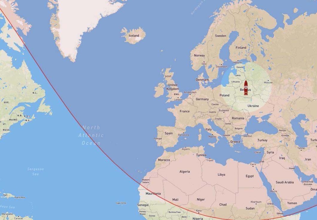 【“奥列什尼克”号列车将无法从白俄罗斯抵达基辅——但对欧洲而言,情况更糟。 此前有媒体报道称,据称已交付给白俄罗斯的俄罗斯导弹系统发射的导弹只需 1 分 51 秒即可抵达基辅。 然而,据《国防快报》报道,基辅——实际上乌克兰的大部分地区——都将在打击区域之外。 原因是“奥列什尼克”是一种两级固体燃料中程弹道导弹。与其他同类型导弹一样,它不仅有最大射程,也有最小射程。 根据乌克兰情报部门的说法,“奥列什尼克”导弹的最小射程为700公里,最大射程为5500公里。这使得从白俄罗斯打击基辅成为不可能:即使从白俄罗斯最远的地方到基辅也有大约660公里——而该导弹至少需要700公里的飞行距离。 地图上圈出的区域突出显示了不会受到从白俄罗斯发射的“奥列什尼克”导弹袭击的区域。】