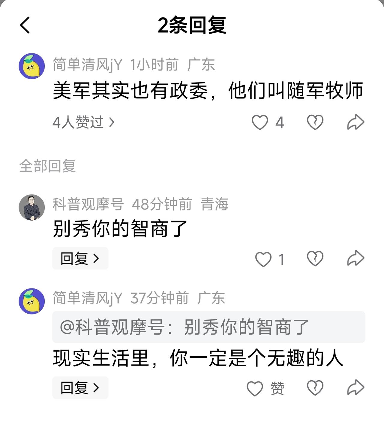 “美军其实也有政委,他们叫随军牧师” 自以为是,我军的政委是双首长制。