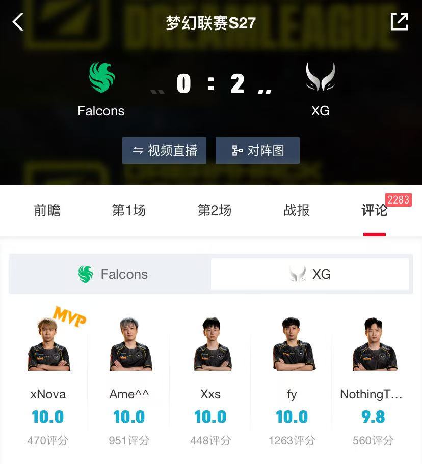 哪怕没看昨晚直播,光看赛后完美app的评分也能知道XG在这两个bo3表现得有多完美了!