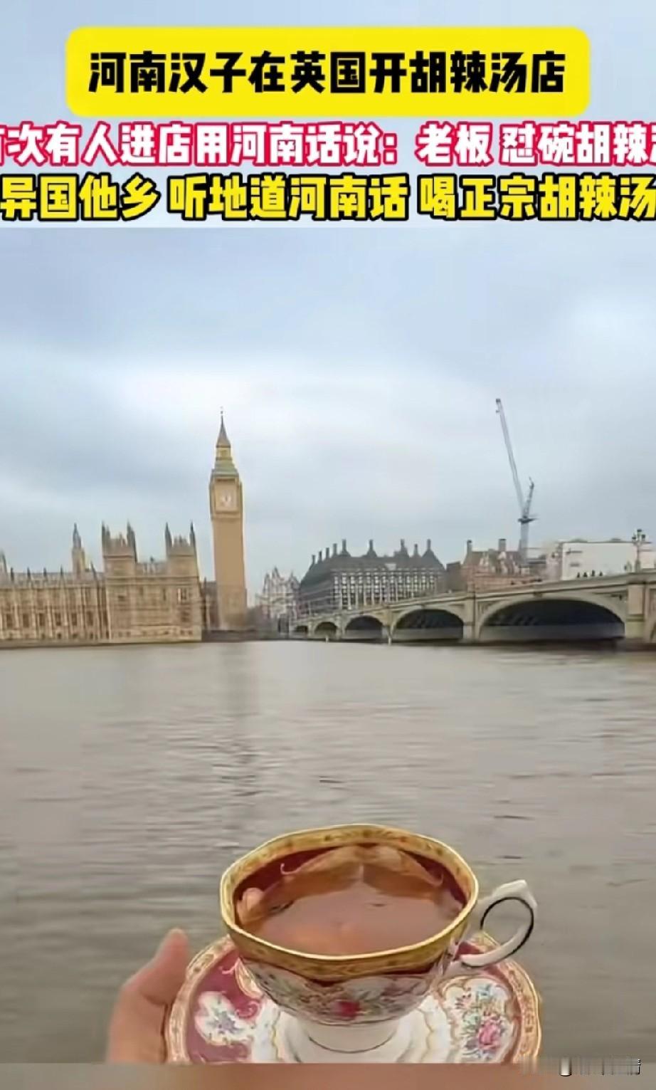 靠着泰晤士河边品着胡辣汤,看着大本钟,中西结合[滑稽笑][滑稽笑][滑稽笑]