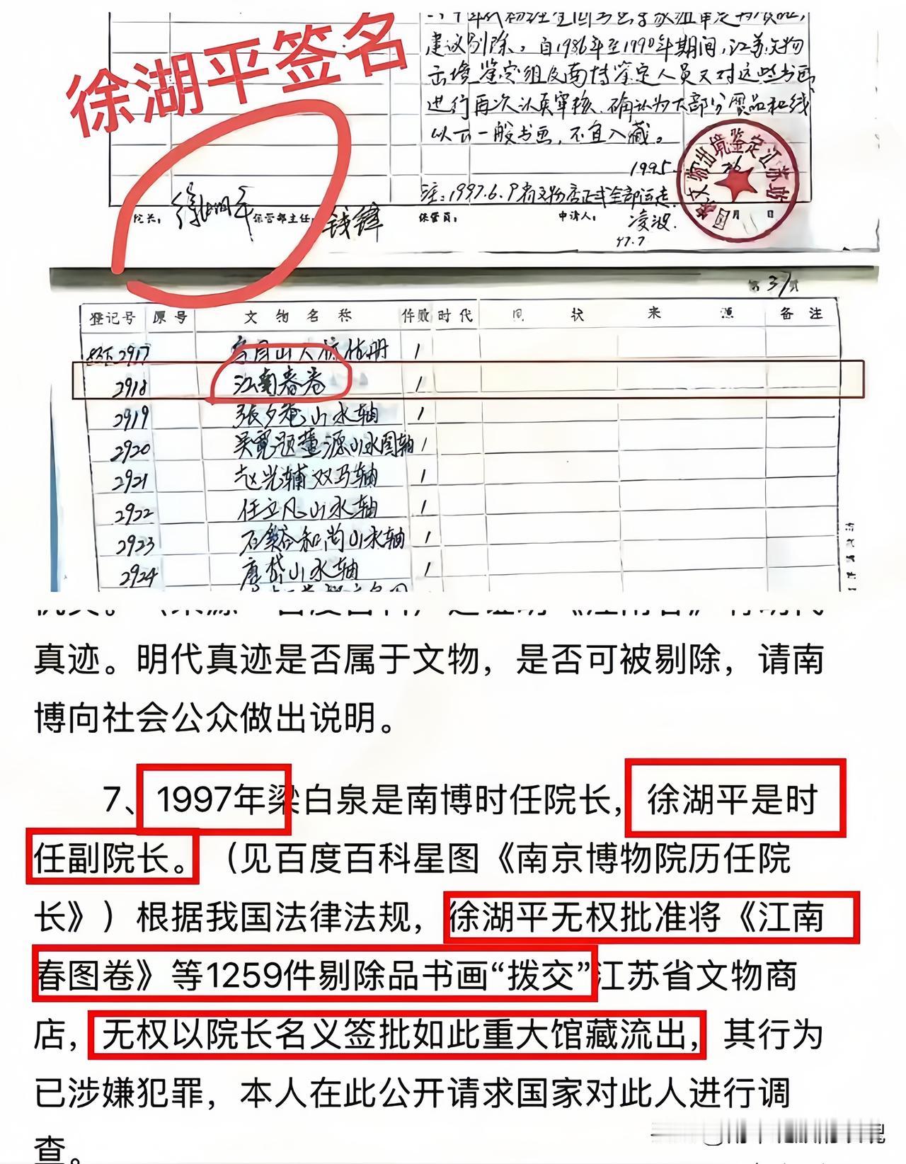 徐湖平这一手“苦肉计”玩得可是真溜。恰恰忘了互联网是有记忆的。 被庞叔令点名后,人家直接来一句“我都80多岁了,不是鉴定家”,这锅甩得简直让人头皮发麻。 这就奇怪了,今年4月领福布斯大奖、6月演讲时那精神头哪去了?咋一到了要担责的时候,就突然老糊涂了? 别忘了,1997年南博要把人家捐的宝贝当废品处理时,您可是正儿八经的院长、法人代表! 这么大的资产处置签字,您现在说没经手、不懂行? 当年被定性为“伪作”的《江南春》,6800块贱卖给私人,现在估价8800万。 这巨大的漏儿怎么就偏偏让人家捡着了?这到底是眼力不行,还是这里头水太深? 庞家一共捐了137件,稀里糊涂少了5件,这事儿必须要个说法。 省里专班已经进驻了,咱就看这回能不能把当年的烂账翻个底朝天。